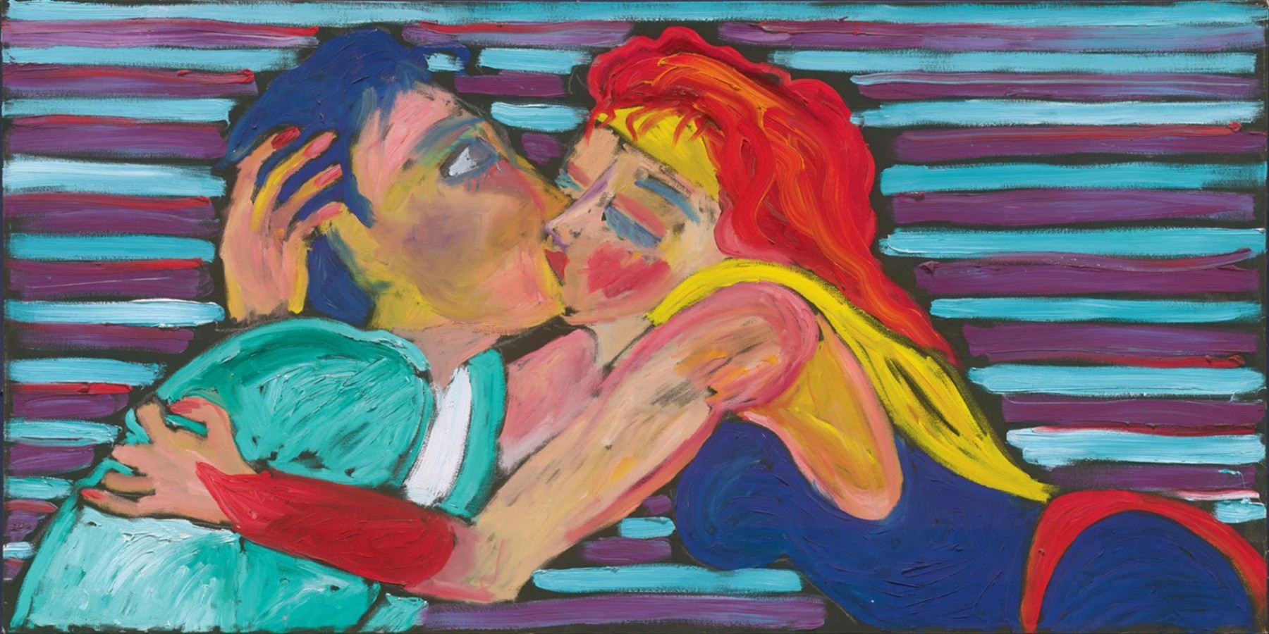 Susan Manders "The Kiss" is a 48by24" original oil on canvas