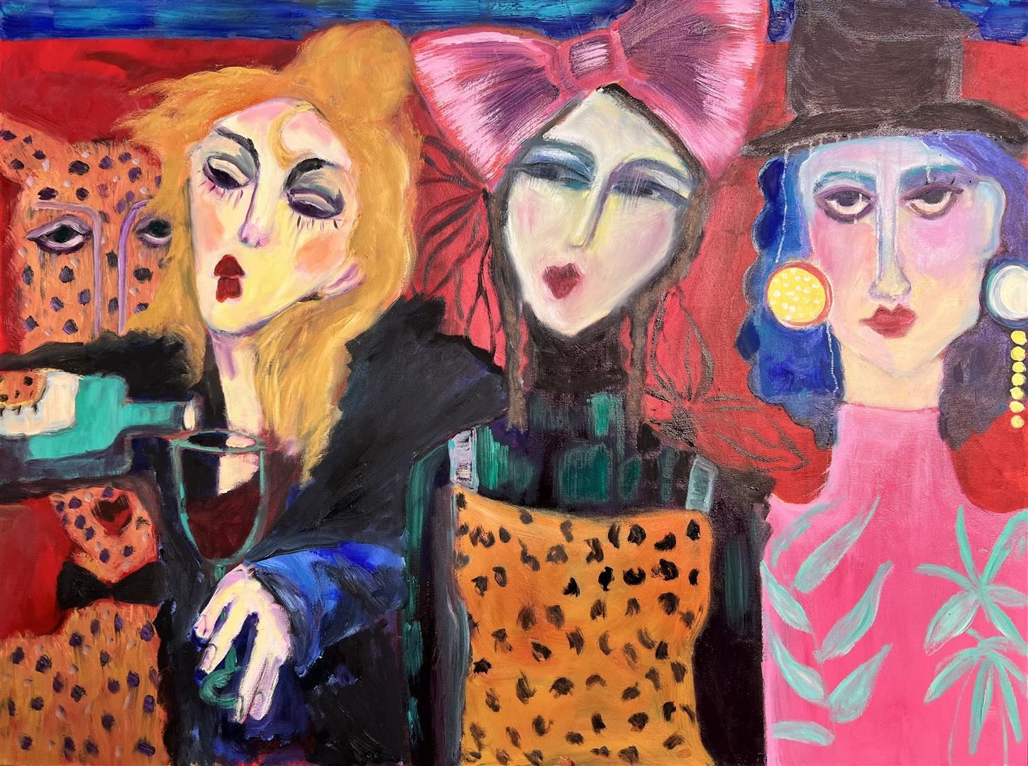 Susan Manders "This Ones On The Leopard" is a 48by36" original oil on canvas