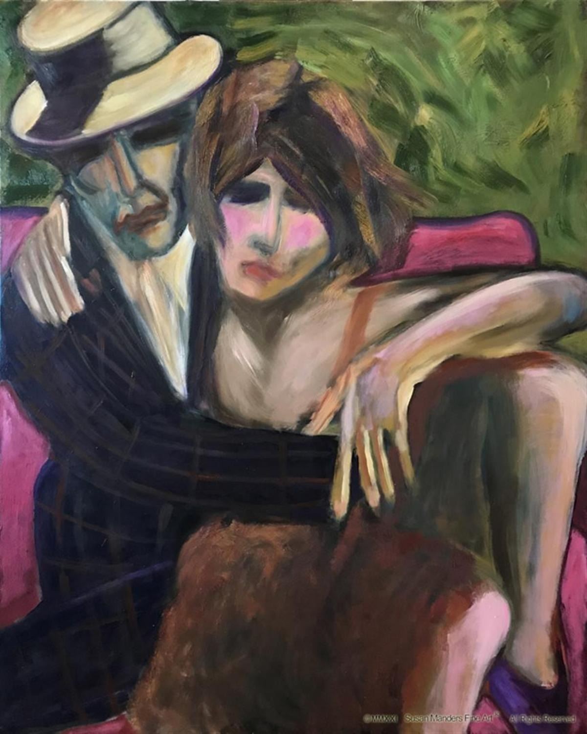Bodies entwine in Susan Manders "Together", a 48 x 60" original oil on canvas. Manders works are represented in fine collections internationally & archived by the National Museum of Women in the Arts ,Washington, DC. As the 2nd woman to be selected a US Olympic Artist, Manders joins an exclusive club of internationally acclaimed artists.
