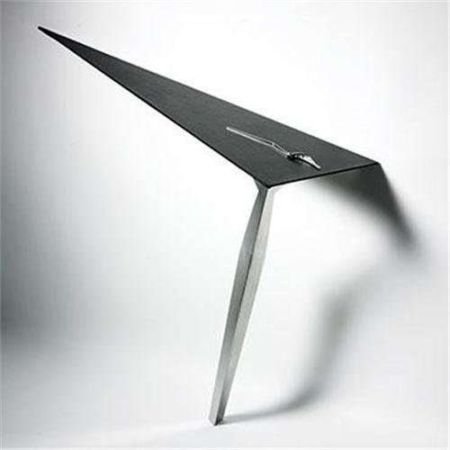 Susanne Philippson<BR>Burning Chrome Keyboard table<BR>Germany, 2007<BR>mirrored stainless steel, leather, magnets<BR>37.5 w x 14 d x 29.5 h inches<BR>This sleek wall-mounted table defies gravity with a magnetic slanted surface that will hold keys and other metal objects. Sold with certificate of origin signed by Susanne Philippson and original assembly instructions. Signed to underside and interior of tabletop: [Susanne Philippson]. <BR><BR>Condition of the item is not included in this description. Condition reports are available from Wright upon request. Wright strongly recommends that you review a condition report for each item on which you plan to bid.