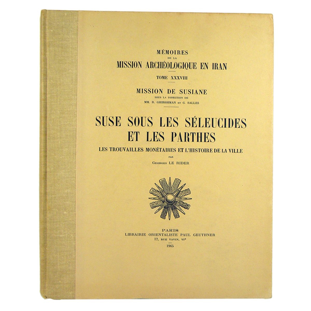 Le Rider, Georges. SUSE SOUS LES SÉLEUCIDES ET LES PARTHES. LES TROUVAILLES MONÉTAIRES ET L'HISTOIRE DE LA VILLE. Paris, 1965. Folio, original tan cloth-backed printed boards. (6), 491, (1) pages; 3 maps, 2 folding; 74 fine plates. Near fine. Mémoires de la Mission Archéologique en Iran, Tome XXXVIII. Rare; possibly fewer than 250 copies were printed of this major archeological report. Daehn 5351. Grierson 50.
