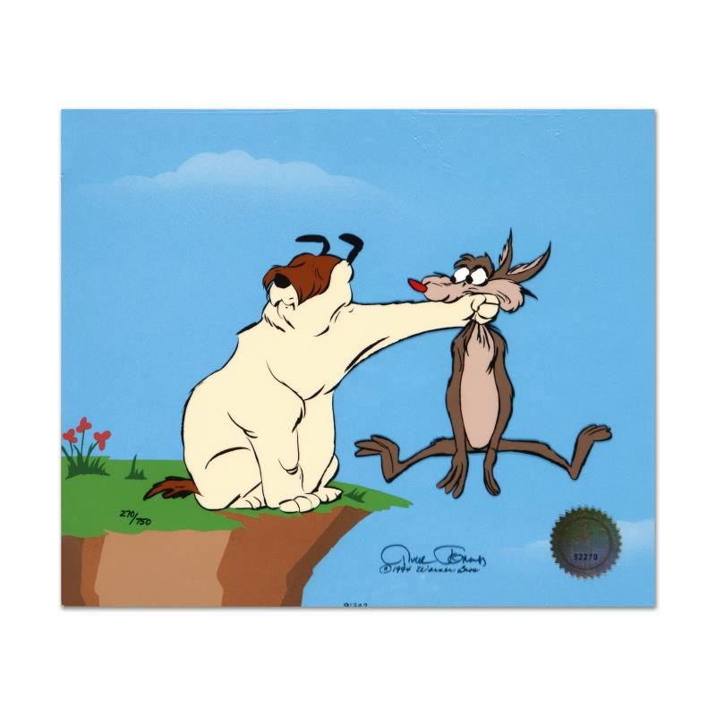 "Suspended Animation" is a limited edition animation cel with hand painted coloring on sericel outline. The piece is numbered, hand signed by Chuck Jones (1912-2002), and includes a Certificate of Authenticity! Measures Approx: 12.5" x 10.5"