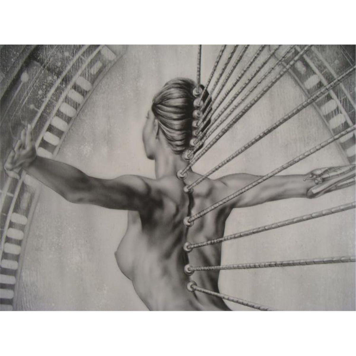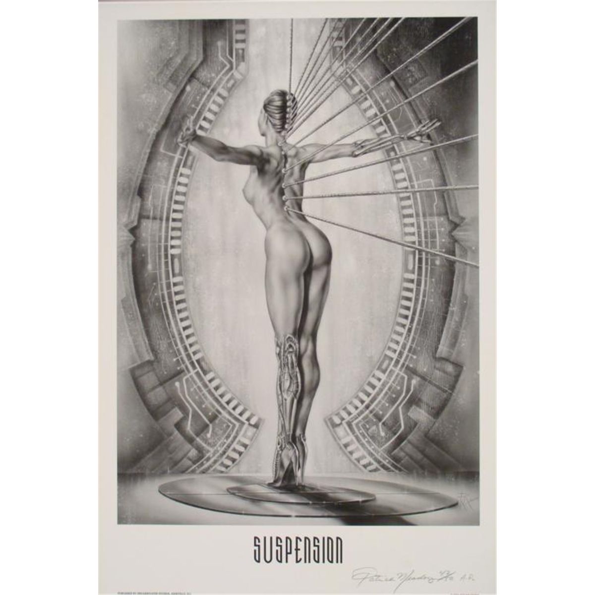 Naked lady suspending from something * Artist: Patrick Meadows * Signature: In pencil, lower right Title: Suspension * Medium: Print on paper Edition: Numbered out of 50 * Sheet Size: 20" x 30" Condition: Excellent Patrick Meadows