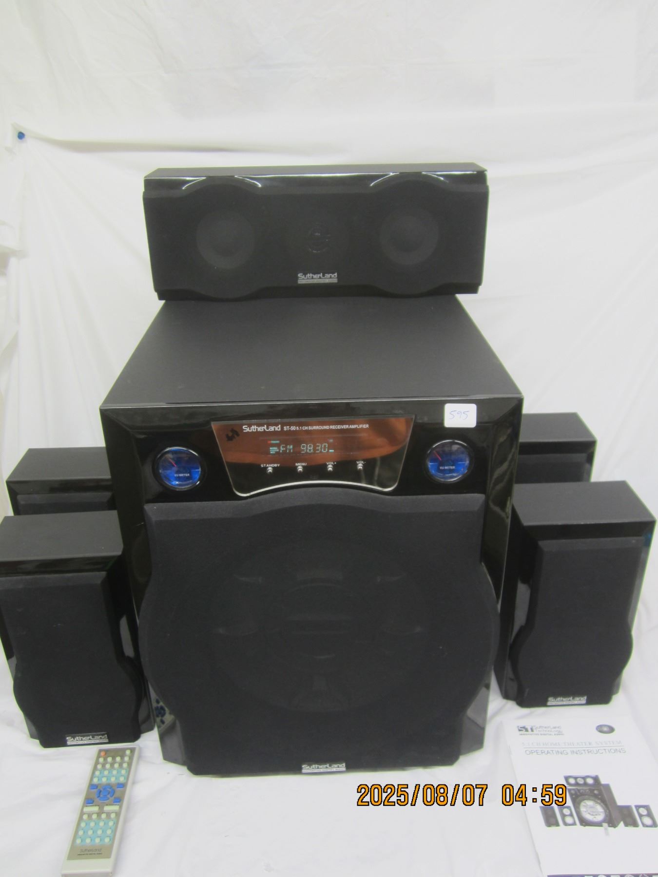 Sutherland ST-505-1CH Surround Receiver Amplifier Sub and 6 Speakers Remote Speakers Working