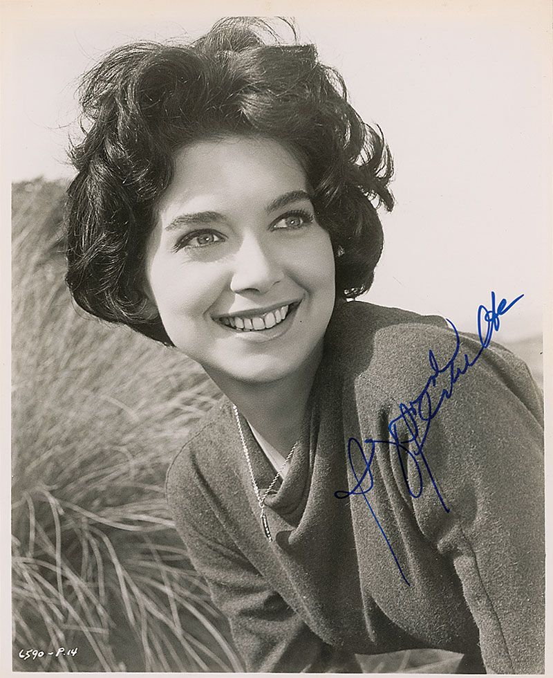 Glossy 7.75 x 9.5 photo of Pleshette, signed in blue felt tip. A couple light creases and lightly trimmed edges, otherwise fine condition.