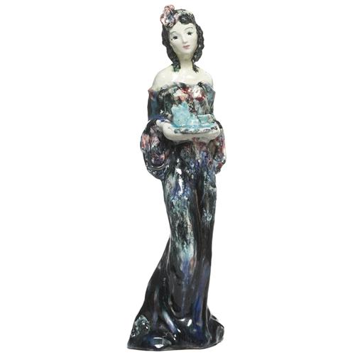 Suzi Singer sculpture, carved and glazed ceramic woman serving tea, marked, 13"h, a few minor chips