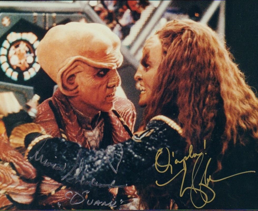 Star Trek signed 8x10 by both he adds Quark his characters name she adds a Klingon phrase with COA