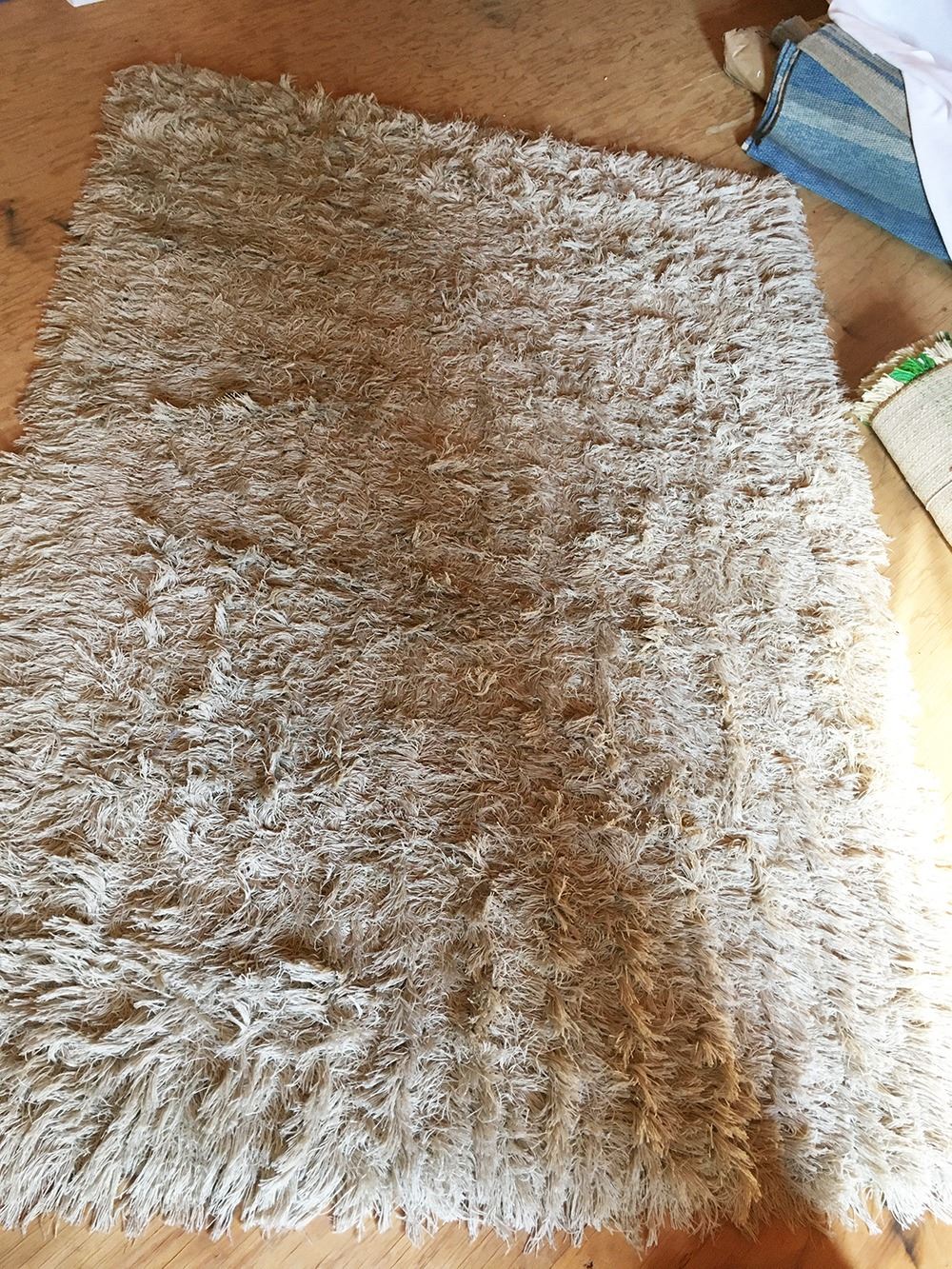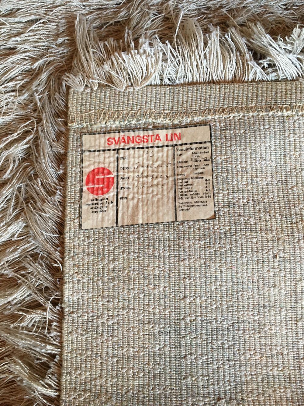 Svangsta Lin vintage Mid-Century Modern Swedish linen shag rug, natural, measures approx. 54 inches x 78 inches.