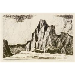 Sven Birger Sandzén (American 1871-1954), Rocks and Clouds, Etching and drypoint, signed Birg...