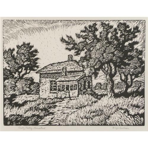 Sven Birger Sandzen (1871-1954) Broadmoor Art Academy, Linocut, "Smoky Valley Homestead", (3 editions printed), 1929, 9" x 12", Pencil signed lower right, titled lower left,