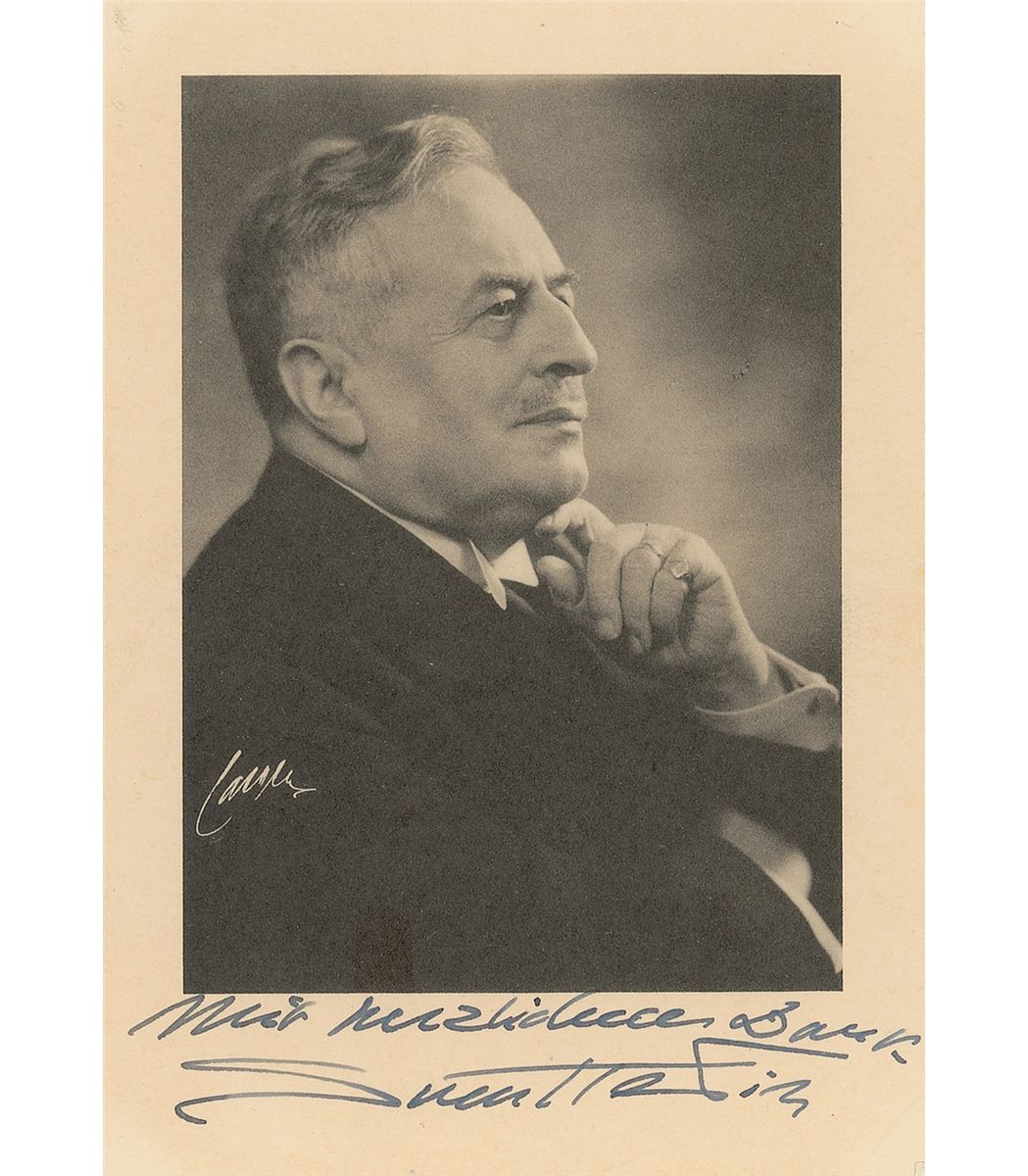 Swedish explorer (1865–1952) who mapped the Himalayas and other regions in Central Asia. Cardstock 4 x 6 photo of Hedin in a black jacket and white tie, signed in the lower border in fountain pen. In fine condition.