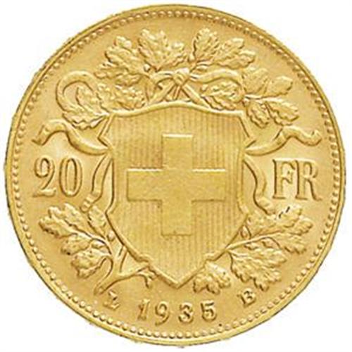 Monete e Medaglie Estere. Svizzera. 20 franchi 1935. Fr 7. AU. FDC.