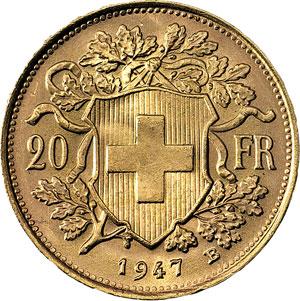 Monete e Medaglie Estere. Svizzera. 20 franchi 1947. Fr. 499. AU. FDC.