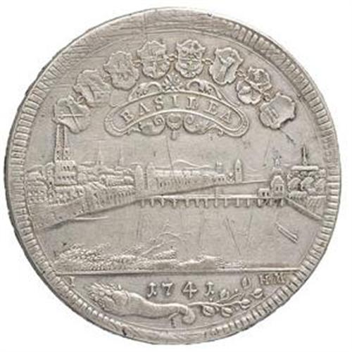 Monete e Medaglie Estere. Svizzera-Basilea. Doppio tallero 1741. KM150. RR. AG. Graffietti. Bel BB.