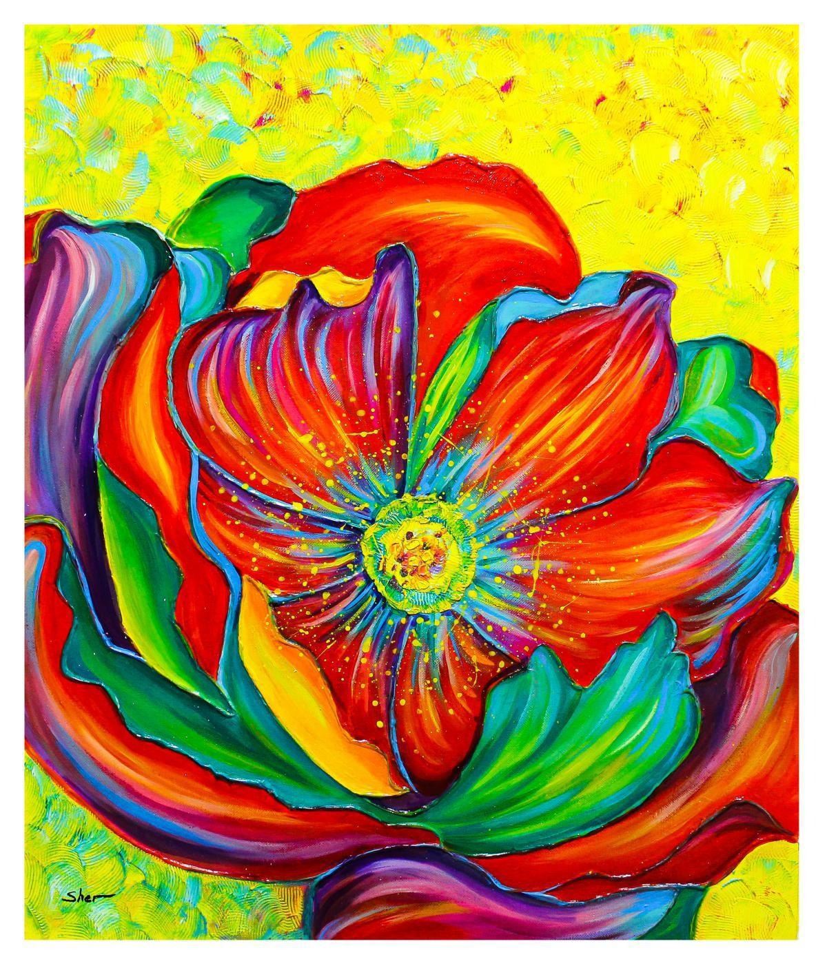Artist: Svyatoslav Shyrochuk. Medium: Original Oil on Canvas. Title: Colorful Flower. Size (Unframed): 24" x 20". Certificate of Authenticity: From the publisher. Reference# 13602.