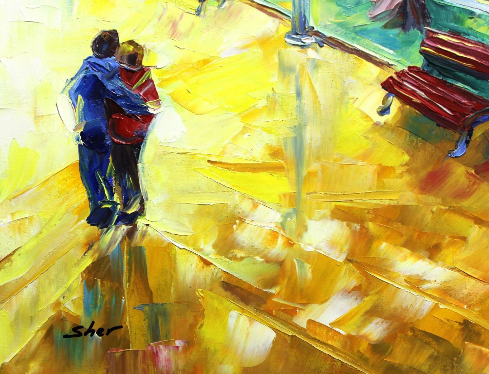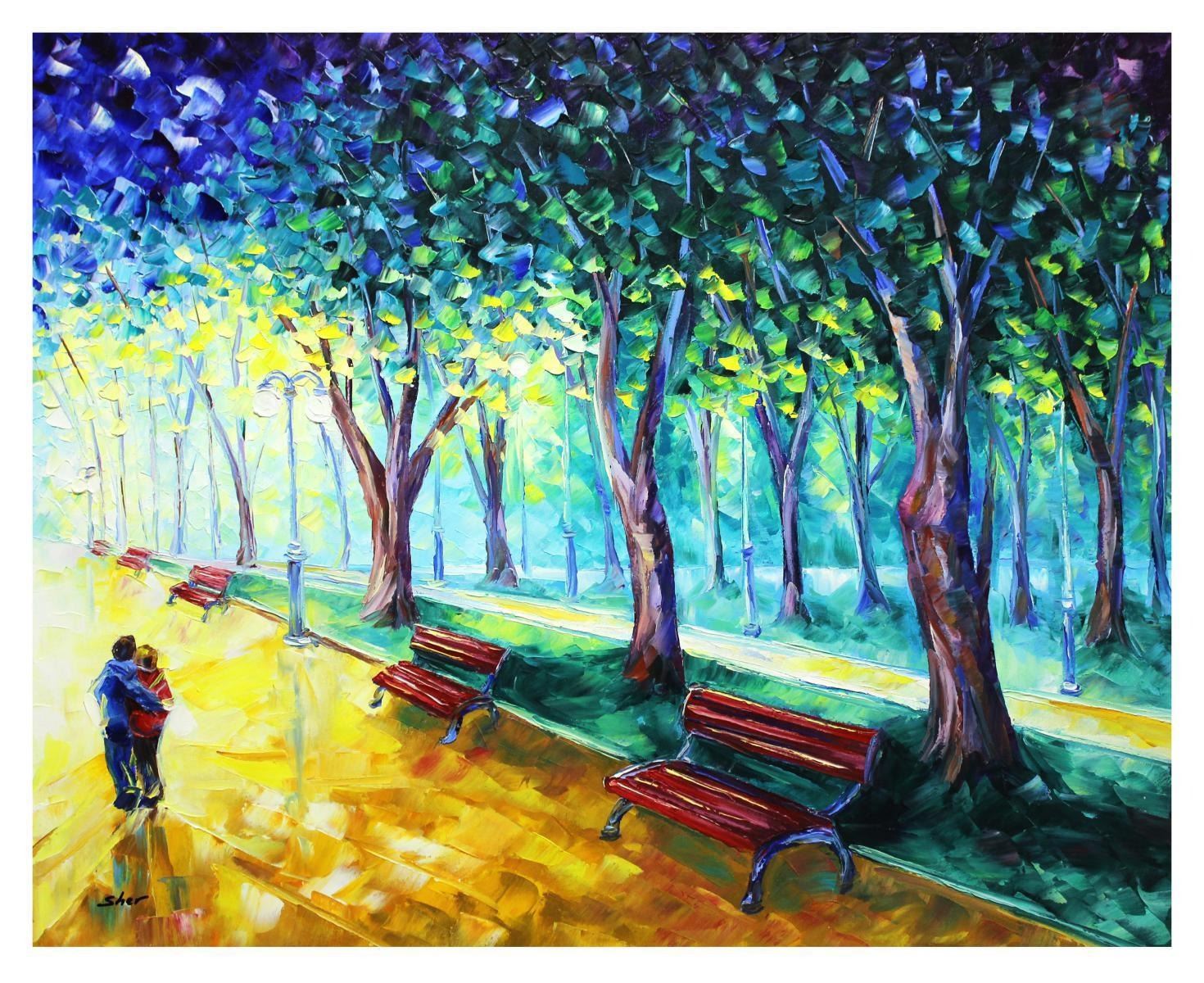 Artist: Svyatoslav Shyrochuk. Medium: Original Oil on Canvas. Title: Hugging in Park. Size (Unframed): 24" x 30". Certificate of Authenticity: From the publisher. Additional: Custom Framed. Reference# 12687.