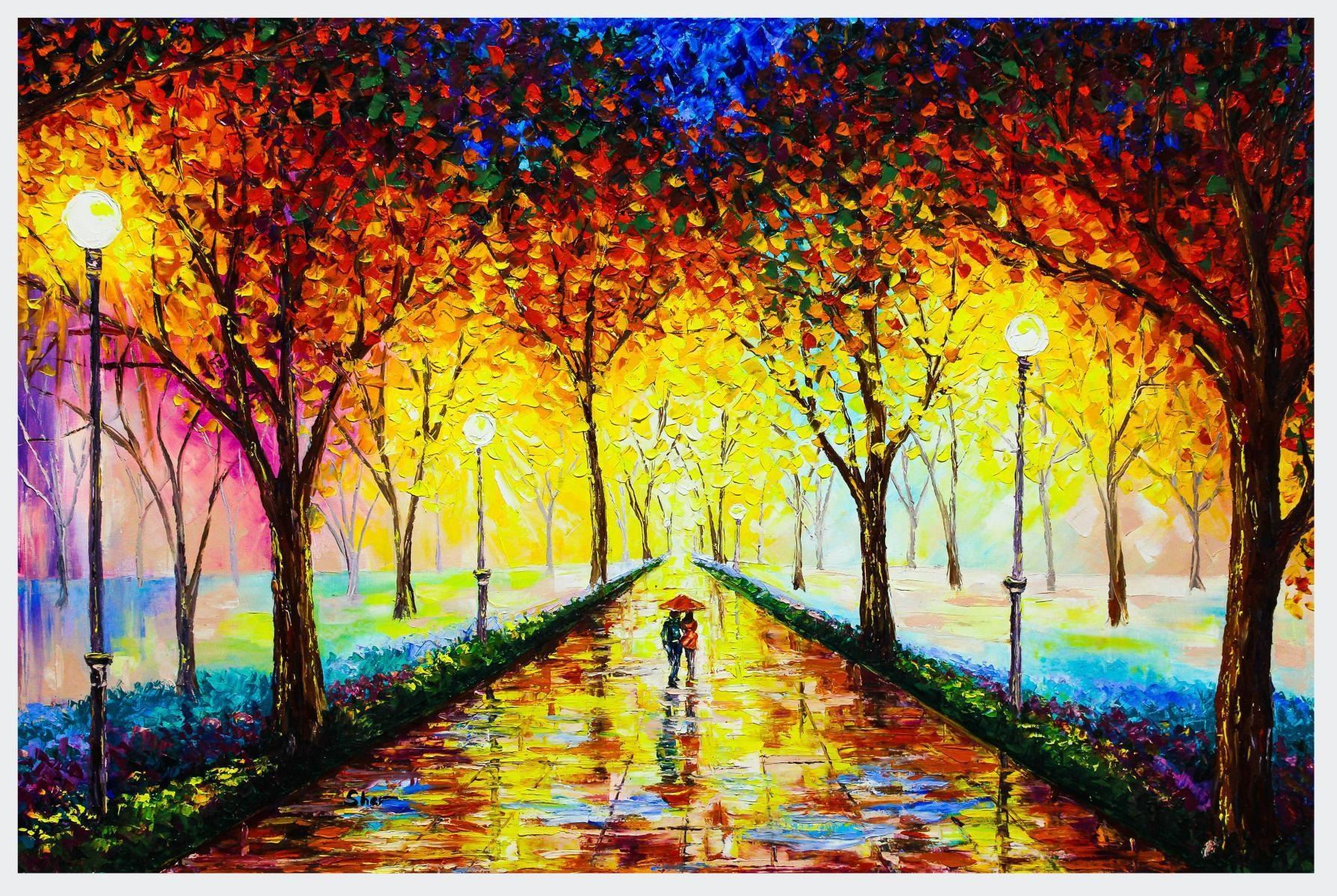 Artist: Svyatoslav Shyrochuk. Medium: Original Oil on Canvas. Title: Night Out in the Park. Size (Unframed): 24" x 36". Certificate of Authenticity: From the publisher. Reference# 16455.