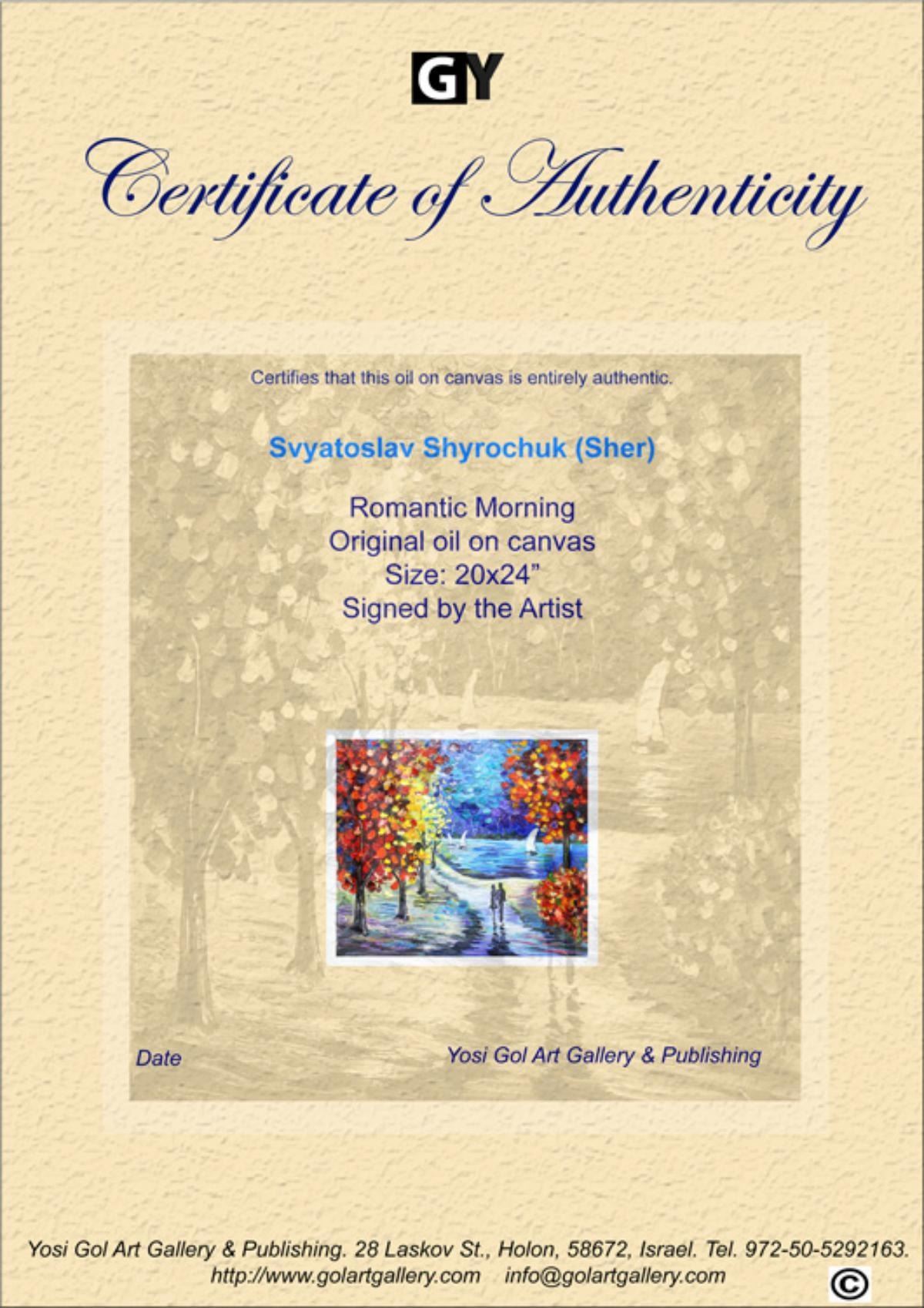 Artist: Svyatoslav Shyrochuk. Medium: Original Oil on Canvas. Title: Romantic Morning. Size (Unframed): 20" x 24". Certificate of Authenticity: From the publisher. Reference# 10318.