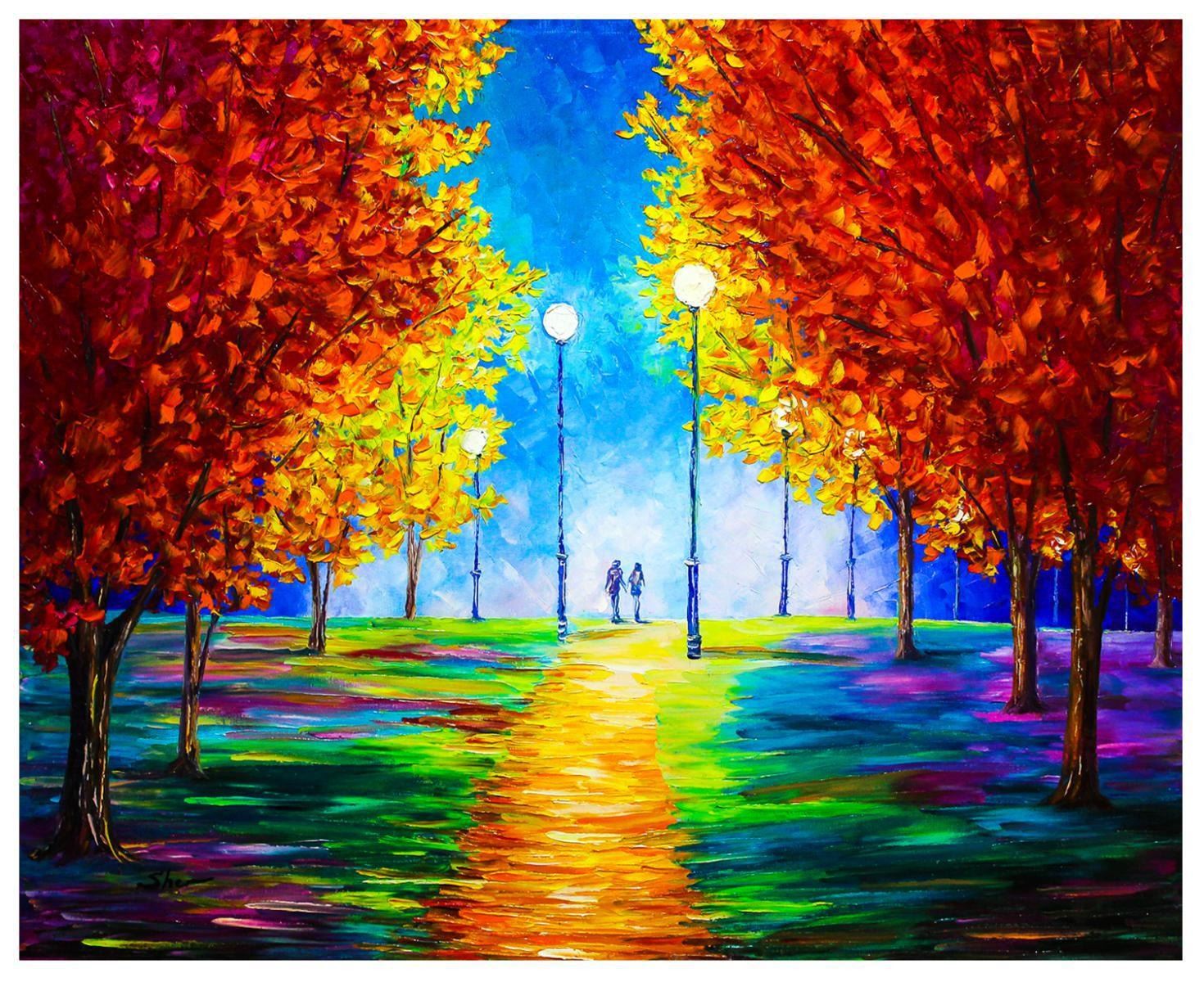 Artist: Svyatoslav Shyrochuk. Medium: Original Oil on Canvas. Title: Walking Through The Lights. Size (Unframed): 24" x 30". Certificate of Authenticity: From the publisher. Reference# 17559.