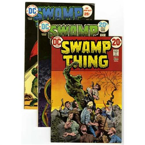 <B>Swamp Thing Group (DC, 1973-76) Condition: Average VF-.</B></I> Contains #5 (Bernie Wrightson art), #8 (2 copies - Wrightson art), 15, 16, 17, 19, 21, 23, and 24. Approximate Overstreet value for group = $150. <I> From the Madison Monk Collection.</B></I><BR><BR><b>Shipping:</b> Comics - Unslabbed (<a target="_blank" href="http://www.heritageauctions.com/common/shipping.php">view shipping information</a>)