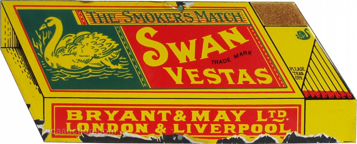 Swan Vestas Matches Porcelain Advertisement Sign "The Smokers Match" w/ match strike on sign - 14" x 6"