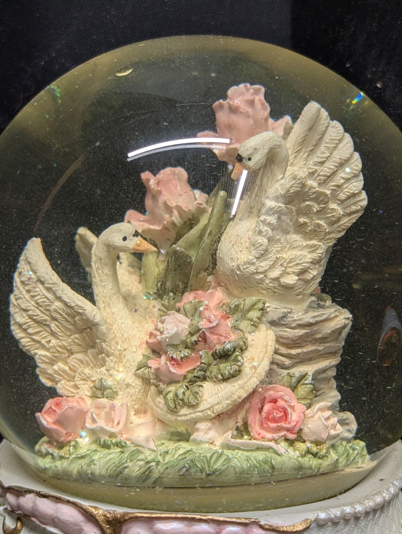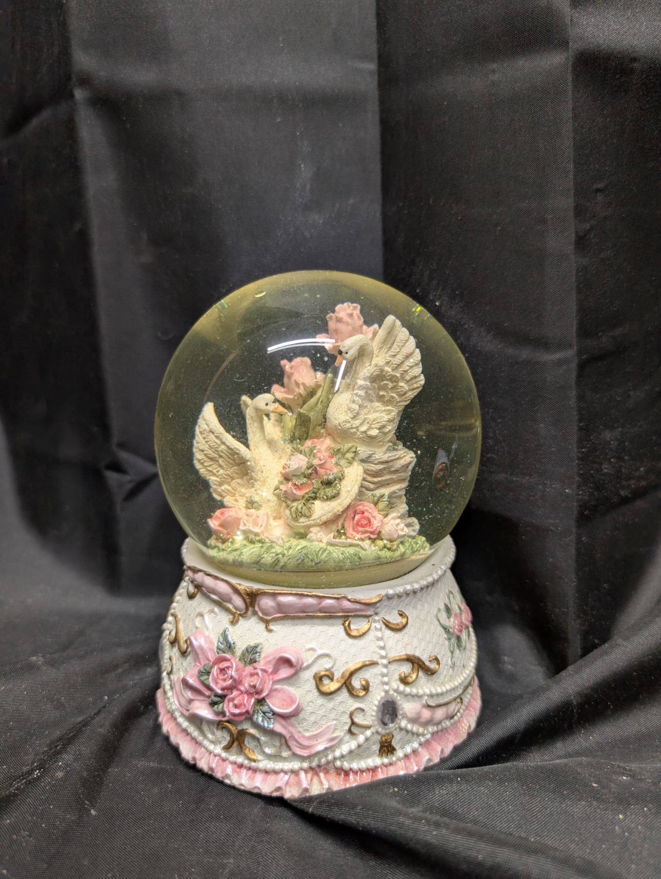 Swan and Flower Design Snow Globe with Music Box (Still works and Good Condition)