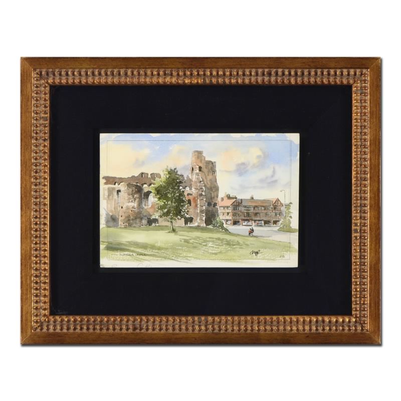 "Swansea Castle" is an original watercolor painting on paper by Martin Goode (1932-2002), hand signed by the artist. This piece comes custom framed. Includes Certificate of Authenticity. Measures approx. 15.5" x 13" (frame), 8.5" x 6" (image).