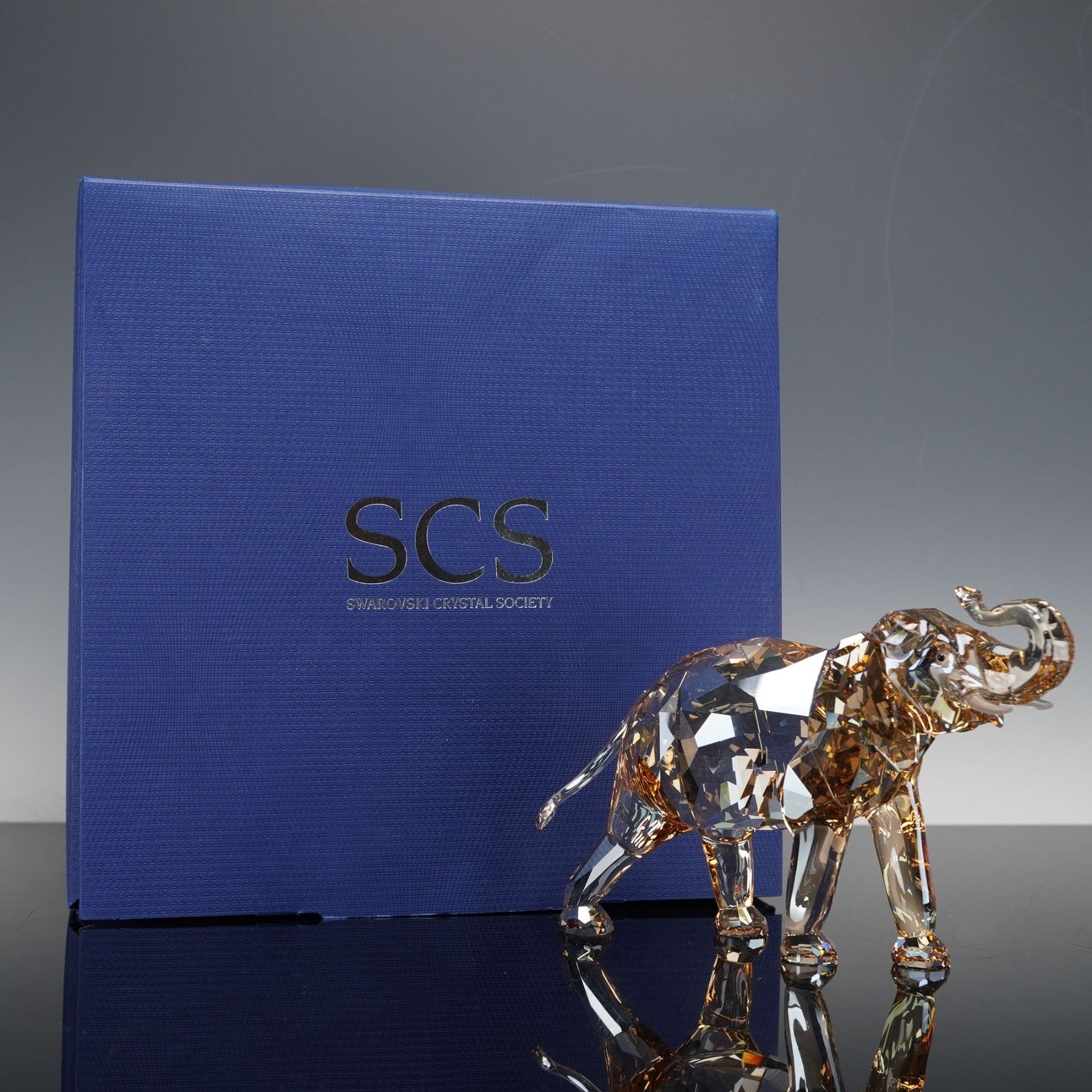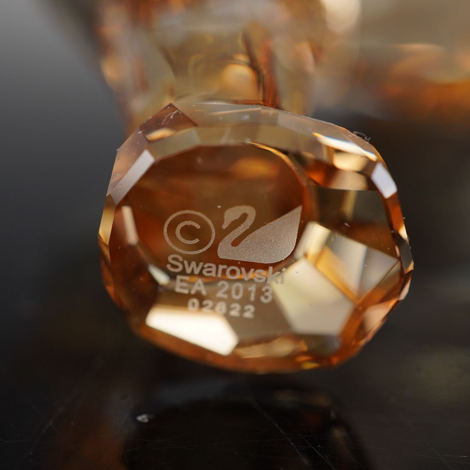 An exquisite crystal figurine made for the Swarovski Crystal Society. Expertly designed with precision-cut facets in warm golden-brown tones, the piece captures the grandeur and grace of the animal with remarkable brilliance and clarity. Presented with its original SCS packaging, this collectible embodies Swarovski's dedication to artistry and craftsmanship. Bearing the etched swan logo and the year 2013, this Annual Edition model is marked EA 2013, 1137207.