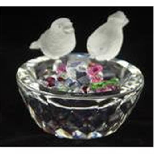 This is a beautiful and 100% authentic Swarovski Bird Bath from the "Exquisite Accents" theme group Silver Crystal. It has two frosted birds sitting on the edge of the clear crystal bowl. This bears the swan logo on the bottom to assure the Genuine Swarovski Mark of Excellence.