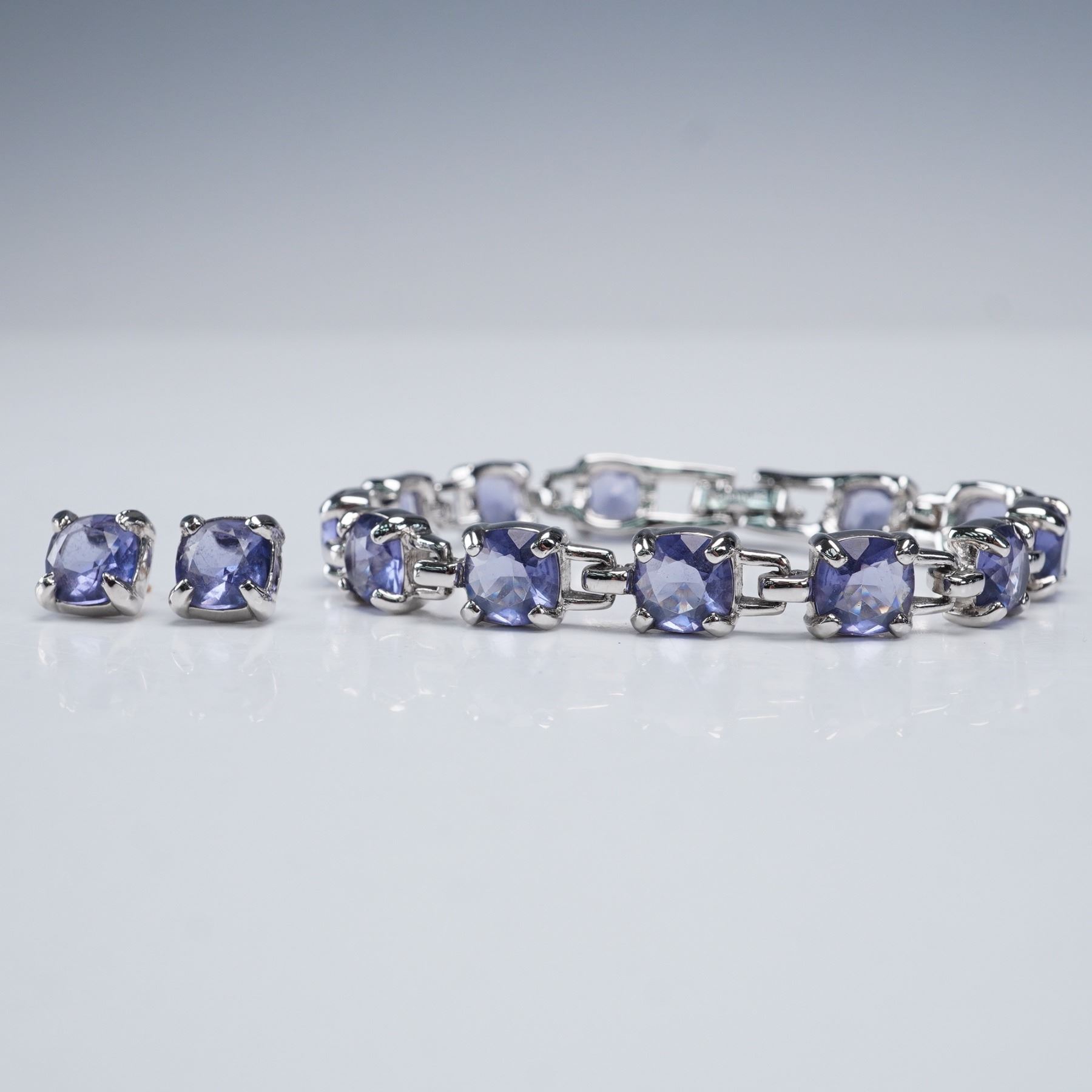 Swarovski Bracelet and Earrings Set Lavender Crystal and Silver Tone