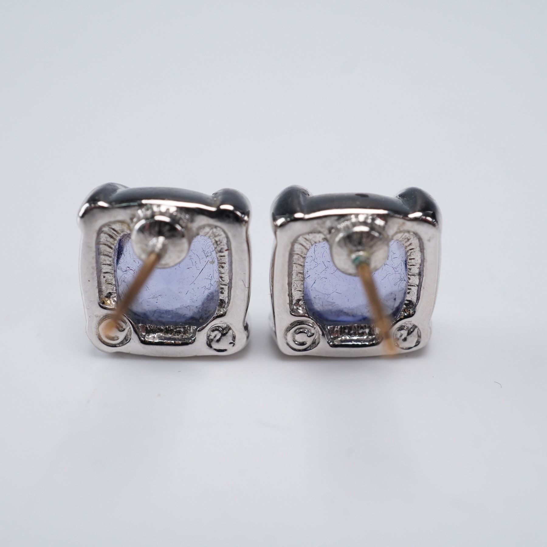 This set includes a Swarovski bracelet and matching earrings featuring crystal purple stones set in a silver-tone metal. The bracelet is elegantly designed with square-cut crystals, and the earrings have a similar design, complementing the bracelet beautifully. All pieces are marked with the Swarovski logo. The set comes with a Swarovski blue velvet storage pouch.