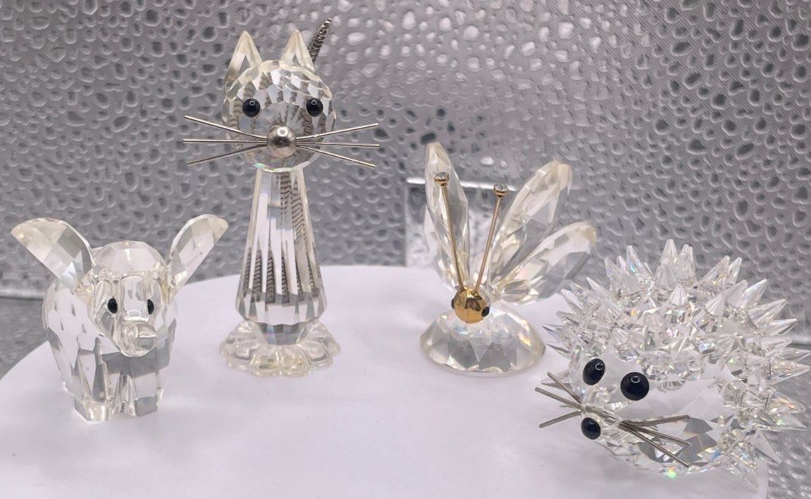 Swarovski Crystal Animal Elephant, Cat, Butterfly and Hedgehog