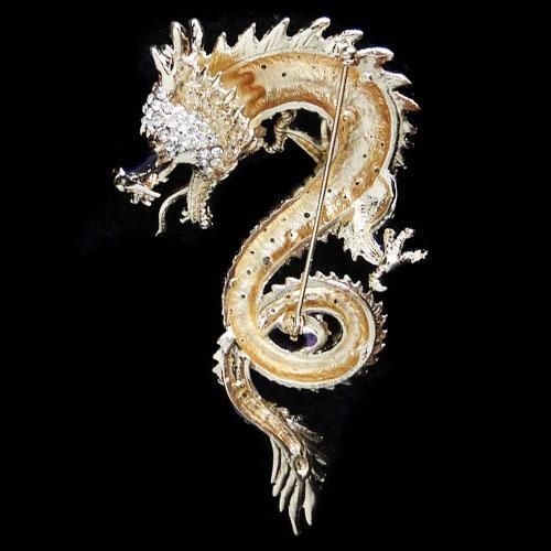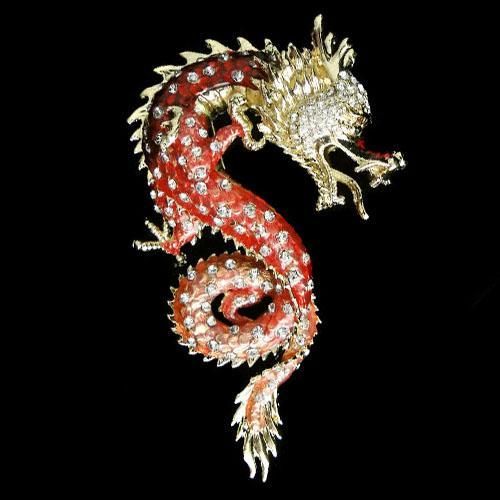 Swarovski Crystal Chinese Dragon Brooch Pin, measures approx 4.25in length by 2.5in width. Mwf2126