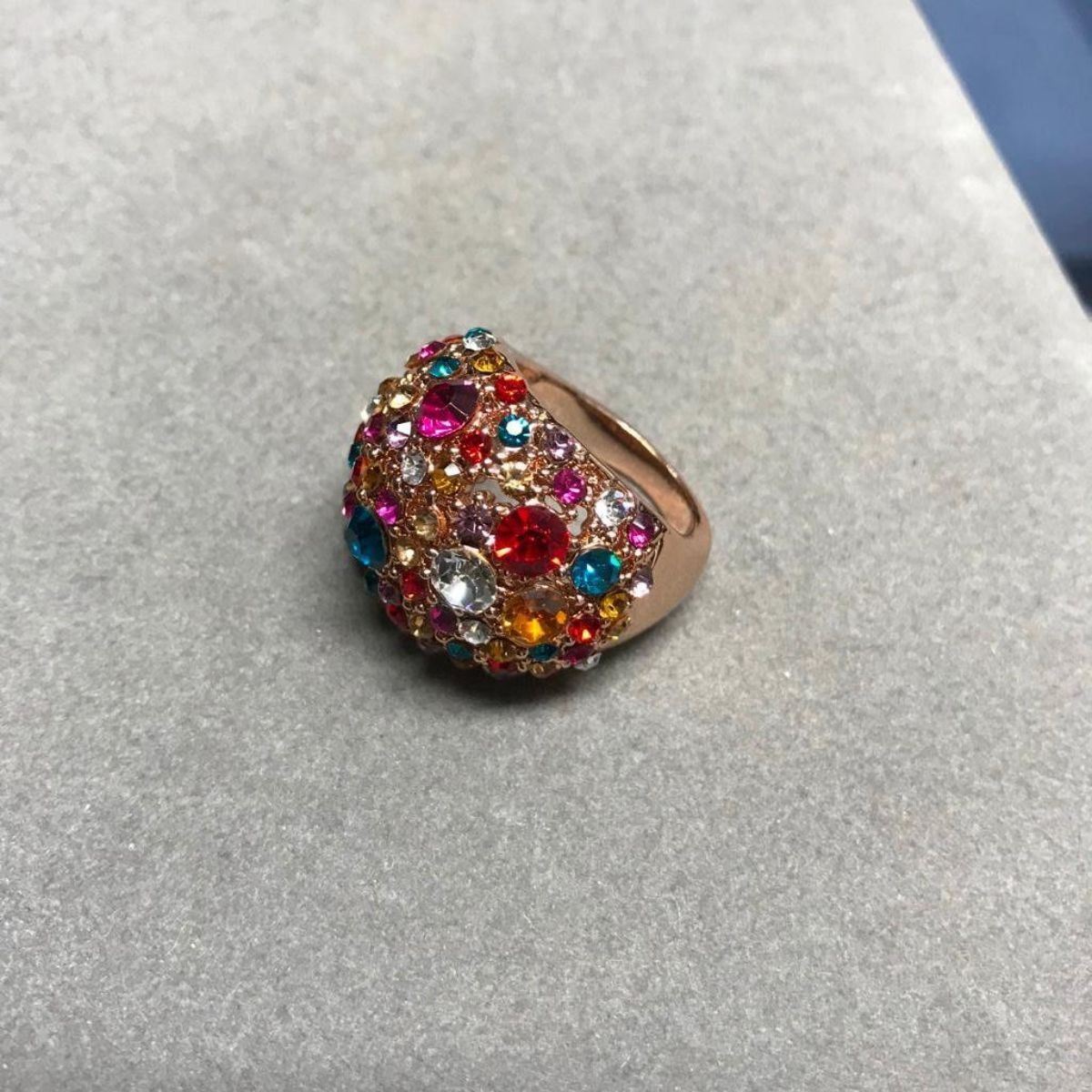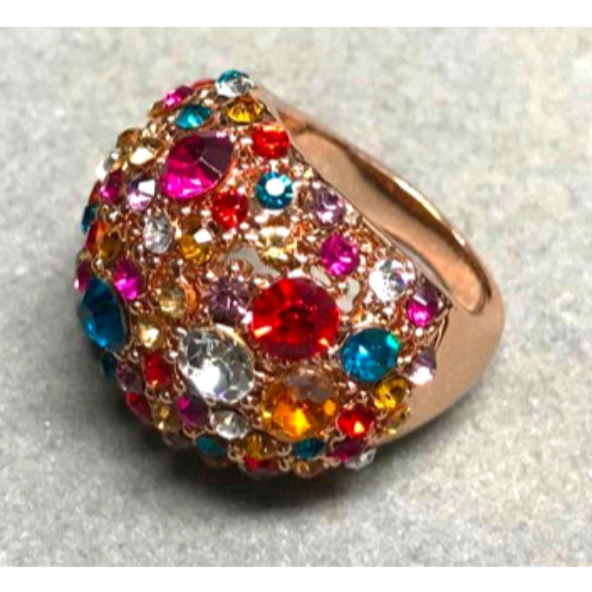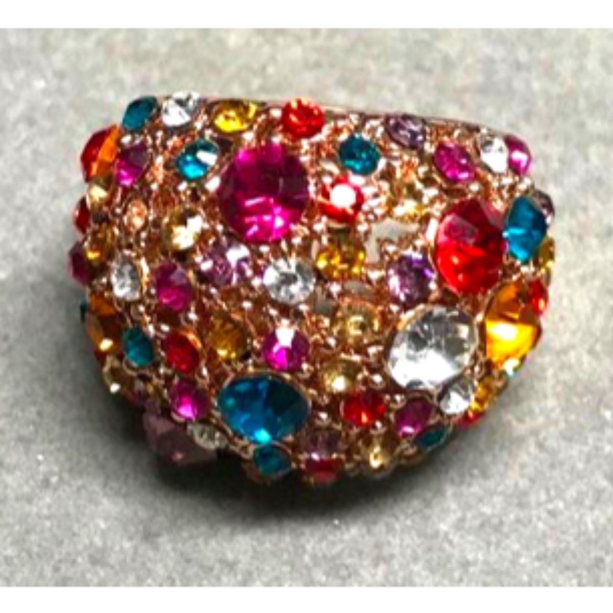 Swarovski crystal multi-colored crystals circus gold plate costume ring. Size 8.5-9.