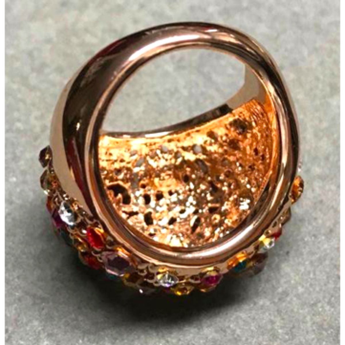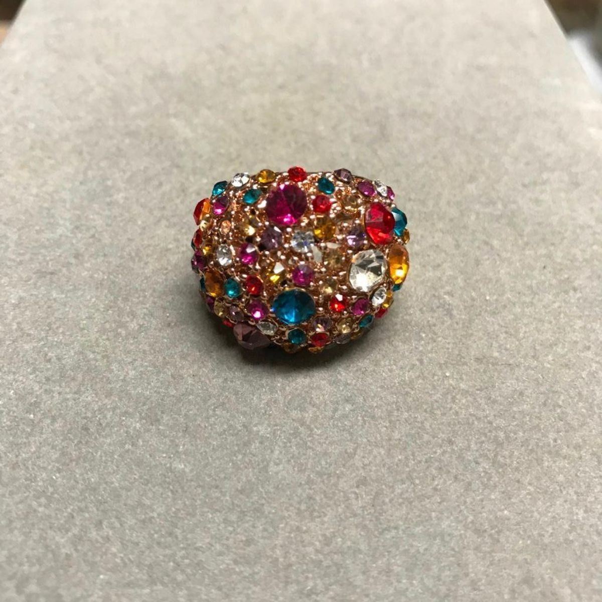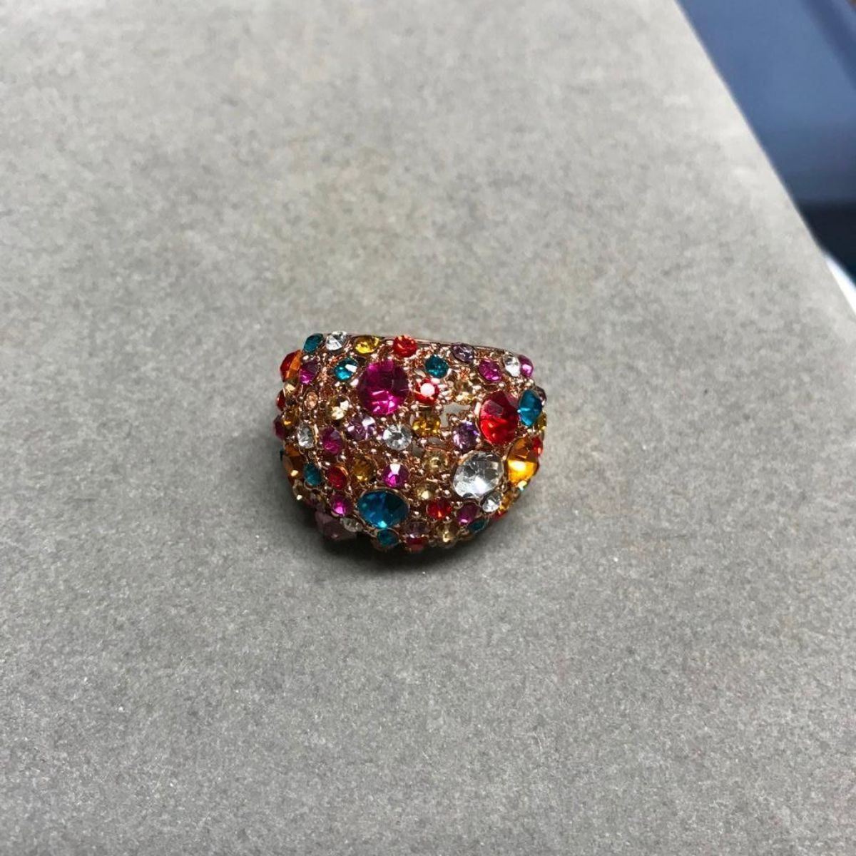 Swarovski crystal multi-colored crystals circus gold plate costume ring. Size 8.5-9.