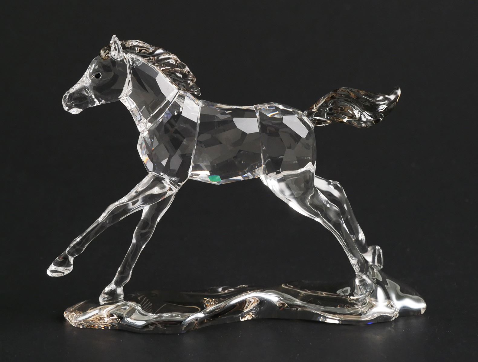 Retired Swarovski Annual Edition 2014 Companion Foal 5004729. Horse figurine is MIB, mint in box. See photos for more details on condition. Please see our other lots from a huge estate collection of rare and hard to find large Swarovski SCS and small Swarovski Silver figurines.