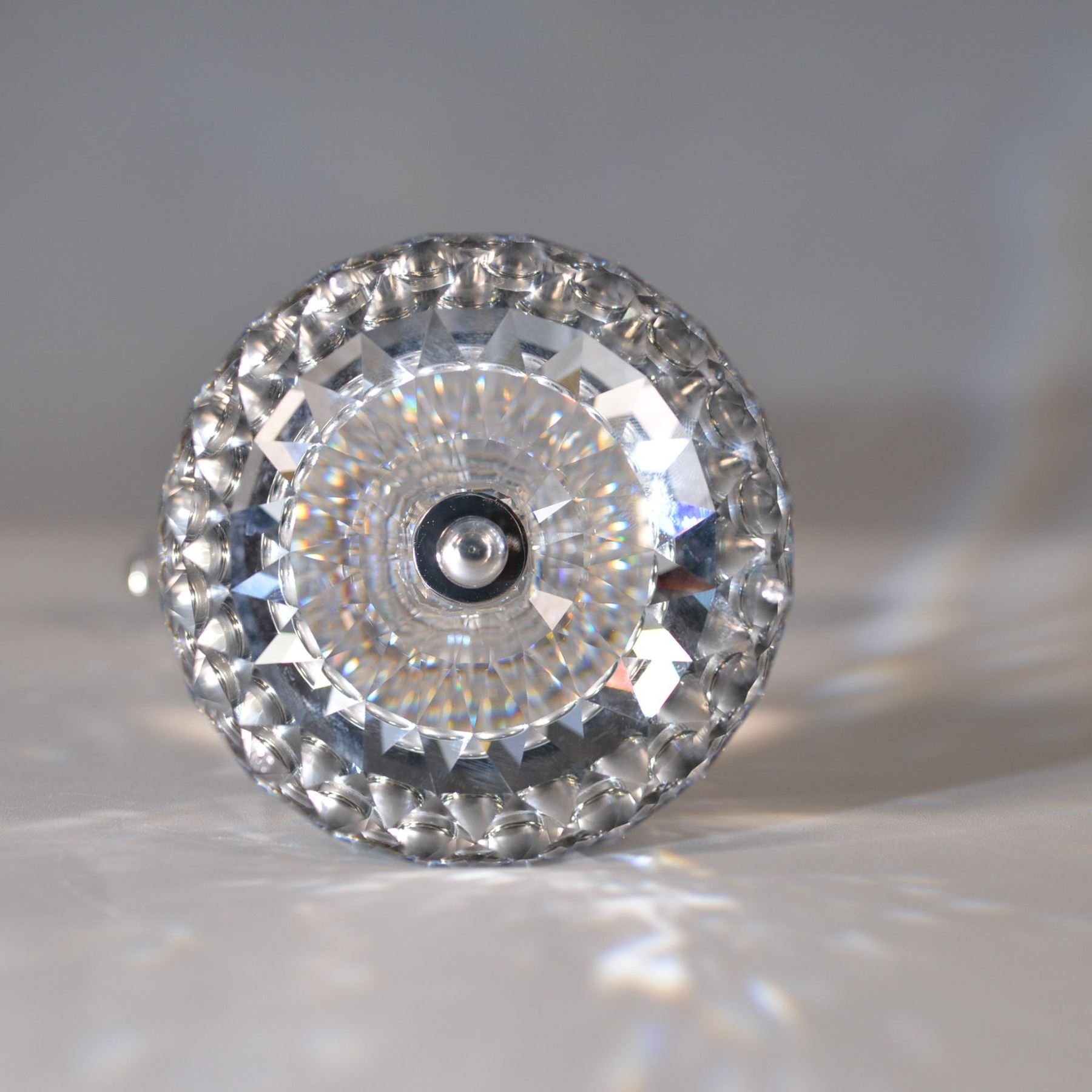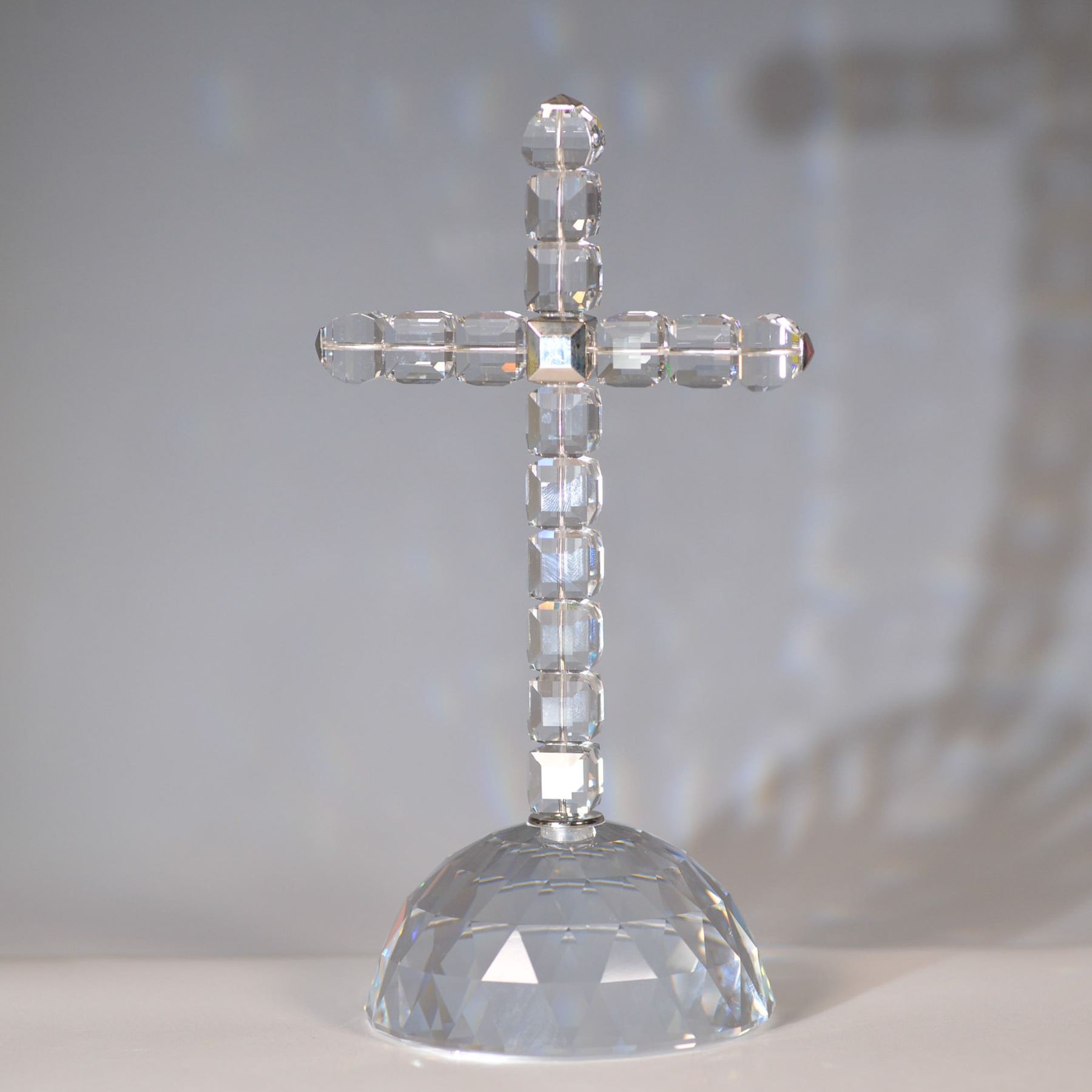 This exquisite Swarovski crystal figurine, known as the Cross of Light, is part of the "Symbols of Light" collection. Designed by Stefano Ricci, the piece stands approximately 7 inches (175mm) tall and consists of two separate crystal components: the cross and its base, which screw together for display. This item has its original box.