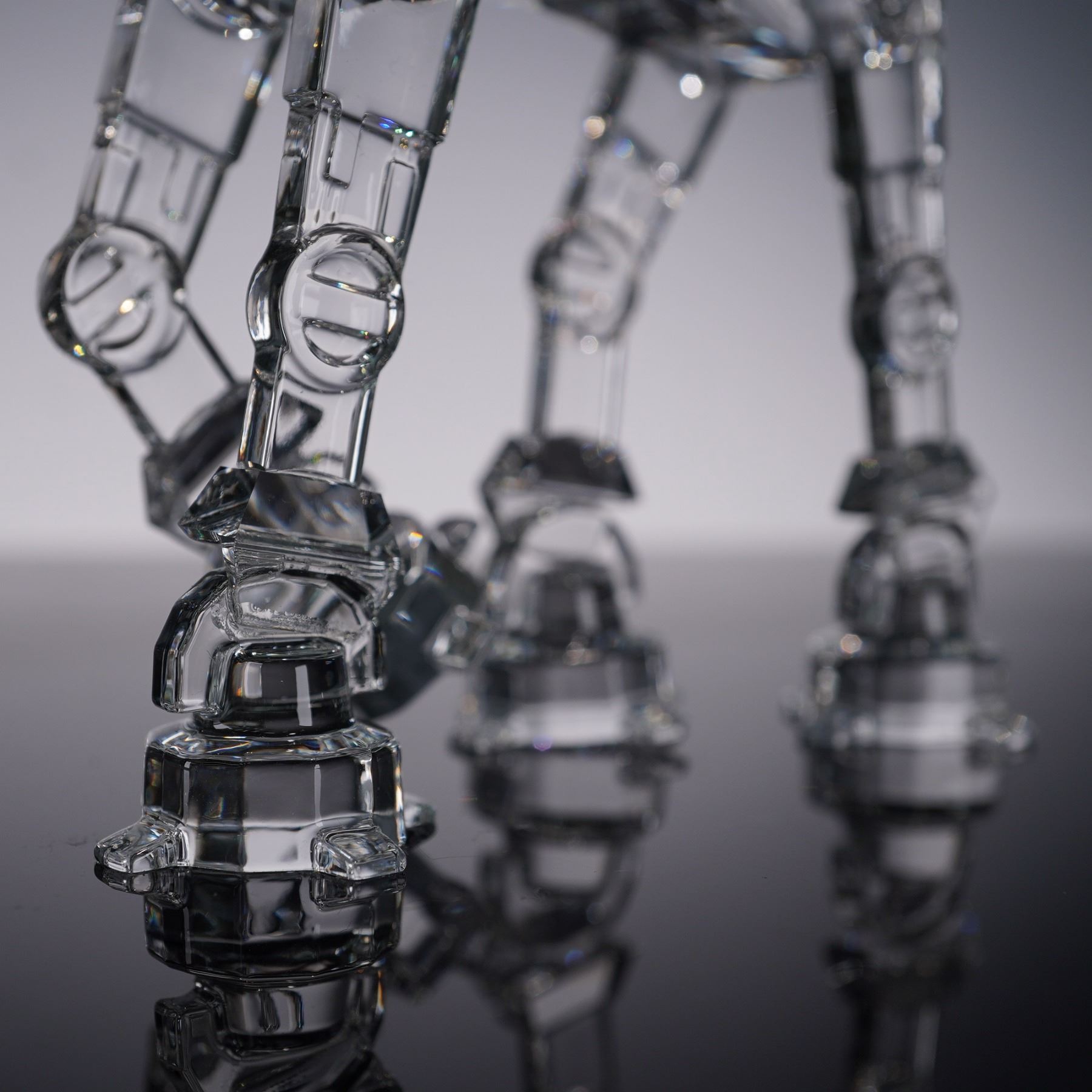 Spectacular Swarovski crystal figurine of the AT-AT Walker from Disney's Star Wars universe, model number 5597042. This meticulously crafted piece features gleaming clear crystal with polished gunmetal-tone details, capturing the powerful presence of the Imperial All Terrain Armored Transport vehicle. A must-have for Star Wars collectors, etched with the Swarovski swan logo and LFL. Includes original Swarovski presentation box.
