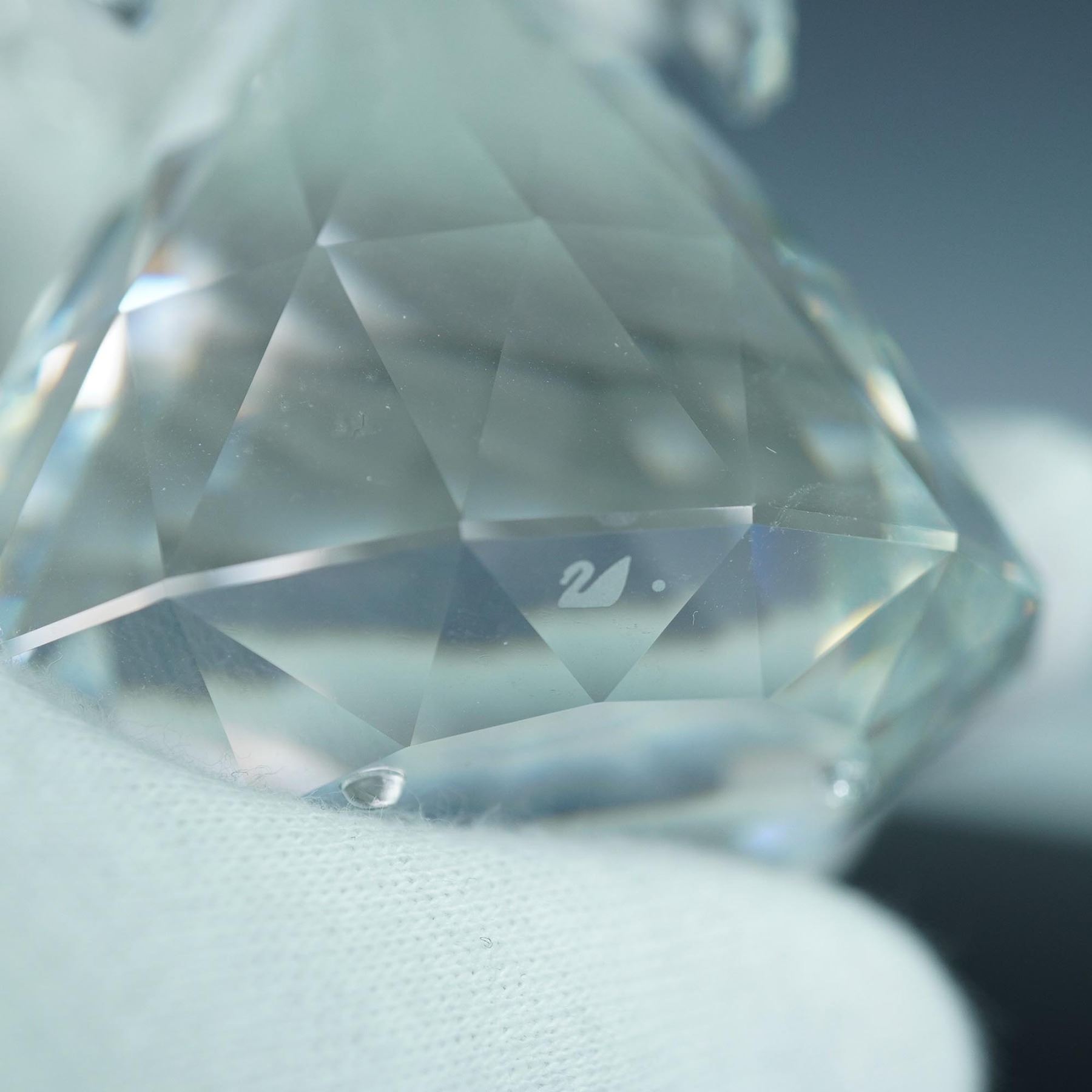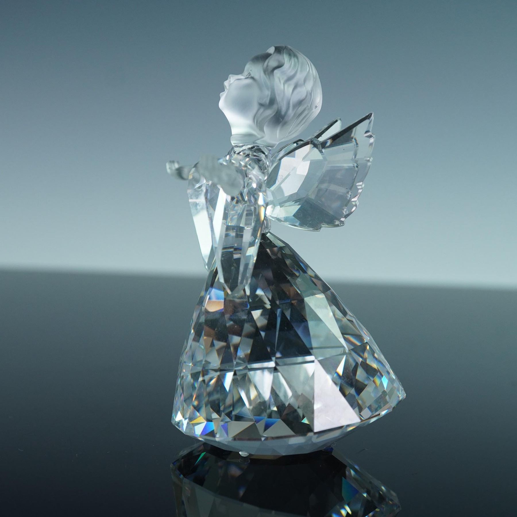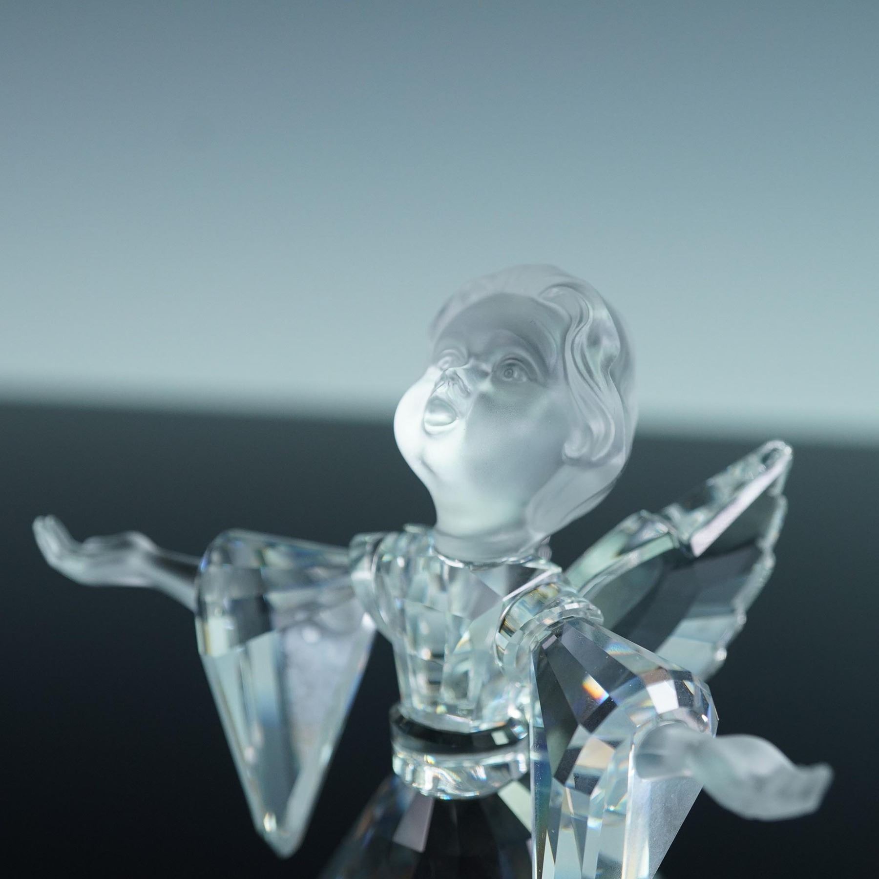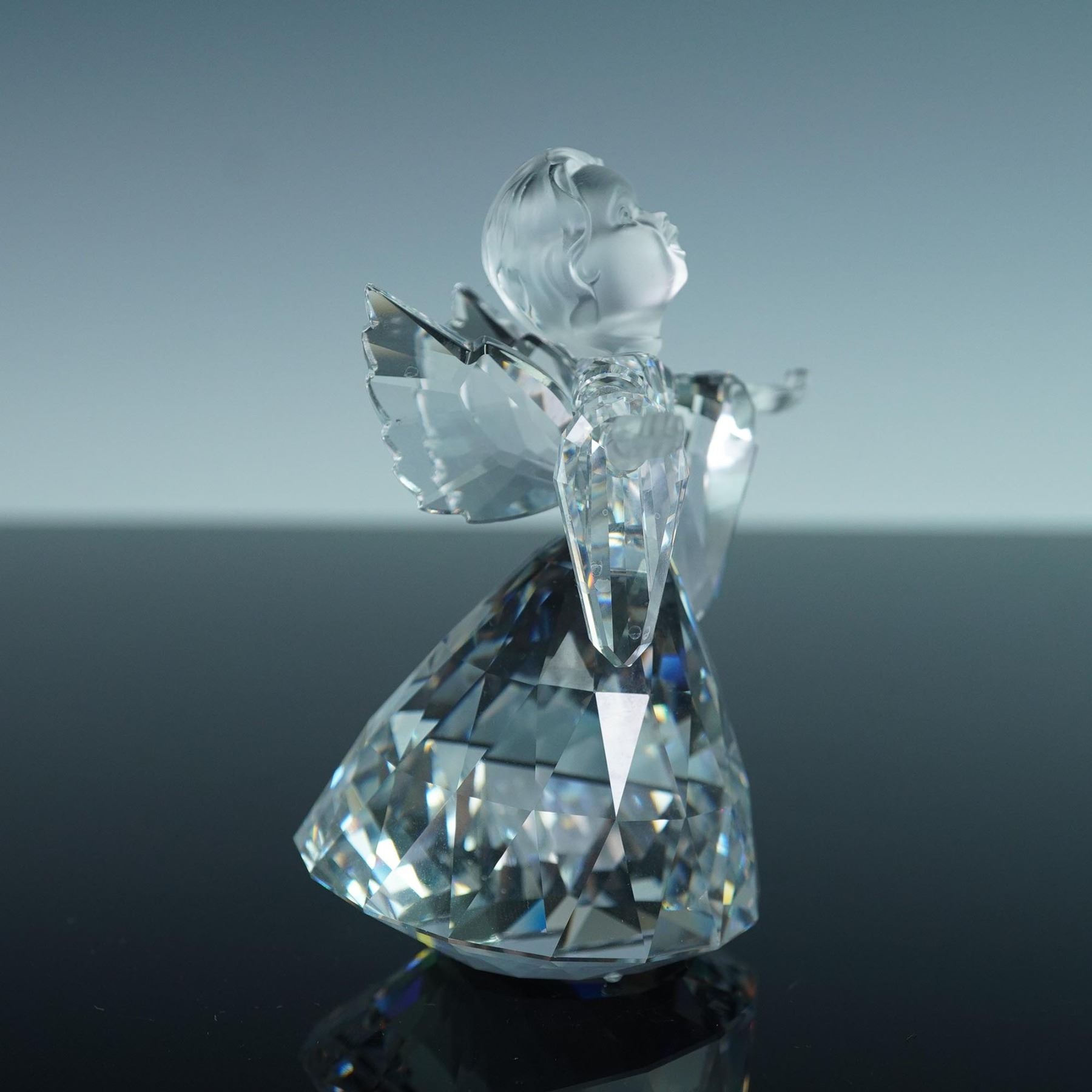 Swarovski Silver Crystal large angel figurine designed by Adi Stocker, featuring a fully faceted clear crystal gown with outstretched arms and frosted crystal hands and face. The expressive design and contrast in finishes highlight Swarovski’s precision artistry. The piece is acid-etched with the swan logo and comes with its original round grey Swarovski box. A timeless and serene collectible, ideal for seasonal displays or as a standalone decorative accent.