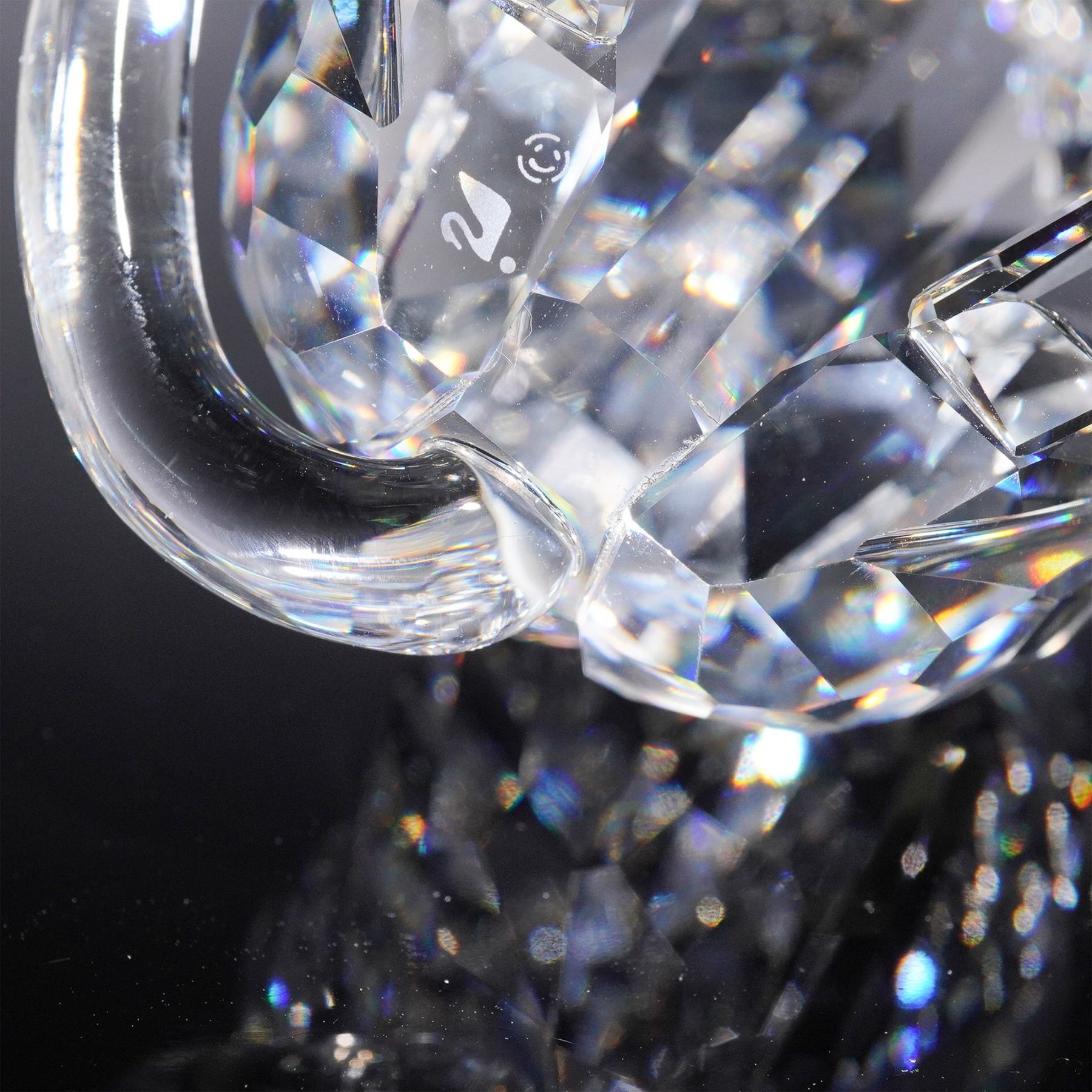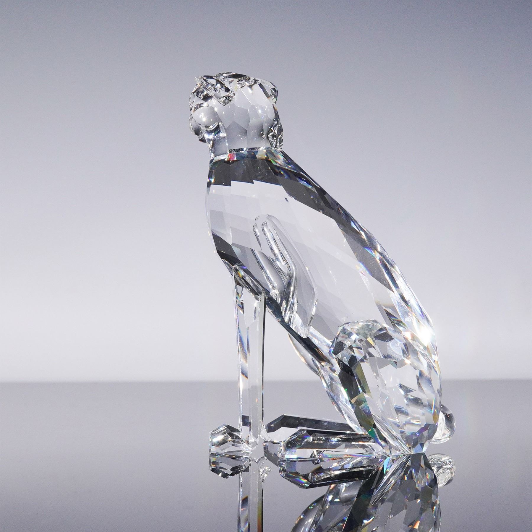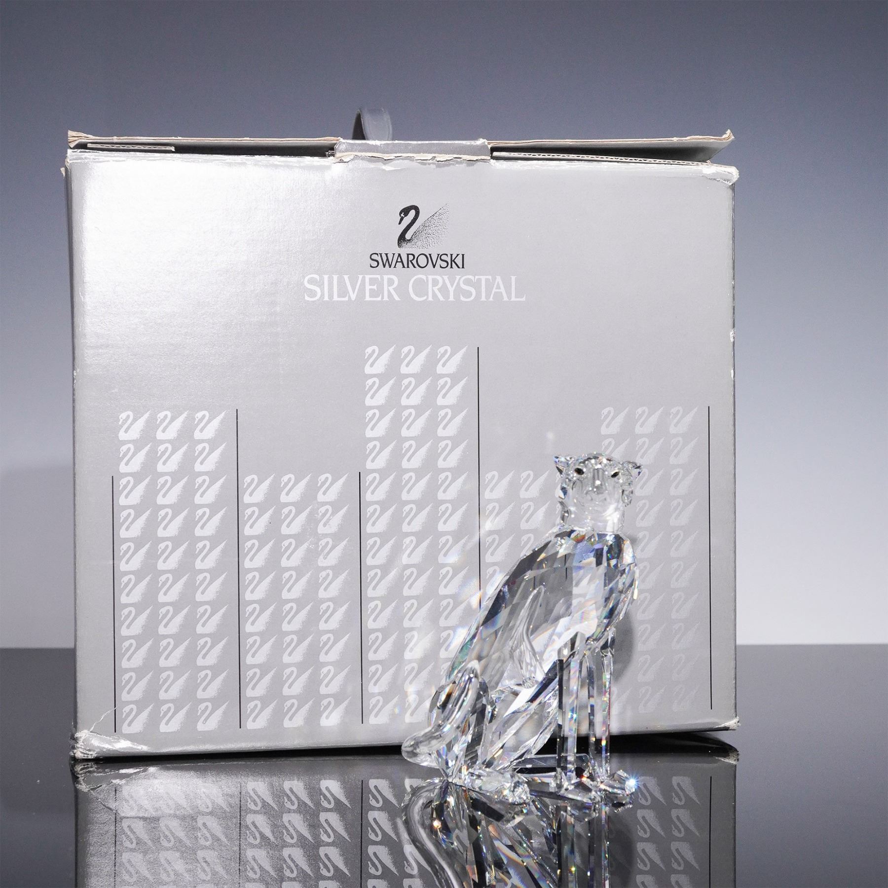 This retired Swarovski crystal figurine, titled Cheetah (Variation 2), is part of the esteemed African Wildlife collection. Crafted in clear faceted crystal, the cheetah sits in a poised, attentive posture, with a distinctive high tail that curves upward—unlike the original design, this variation avoids contact with display surfaces. The expressive detail in the face and sleek geometry of the body showcase the expert craftsmanship Swarovski is celebrated for. Swarovski acid mark. 183225. This item has its original box.