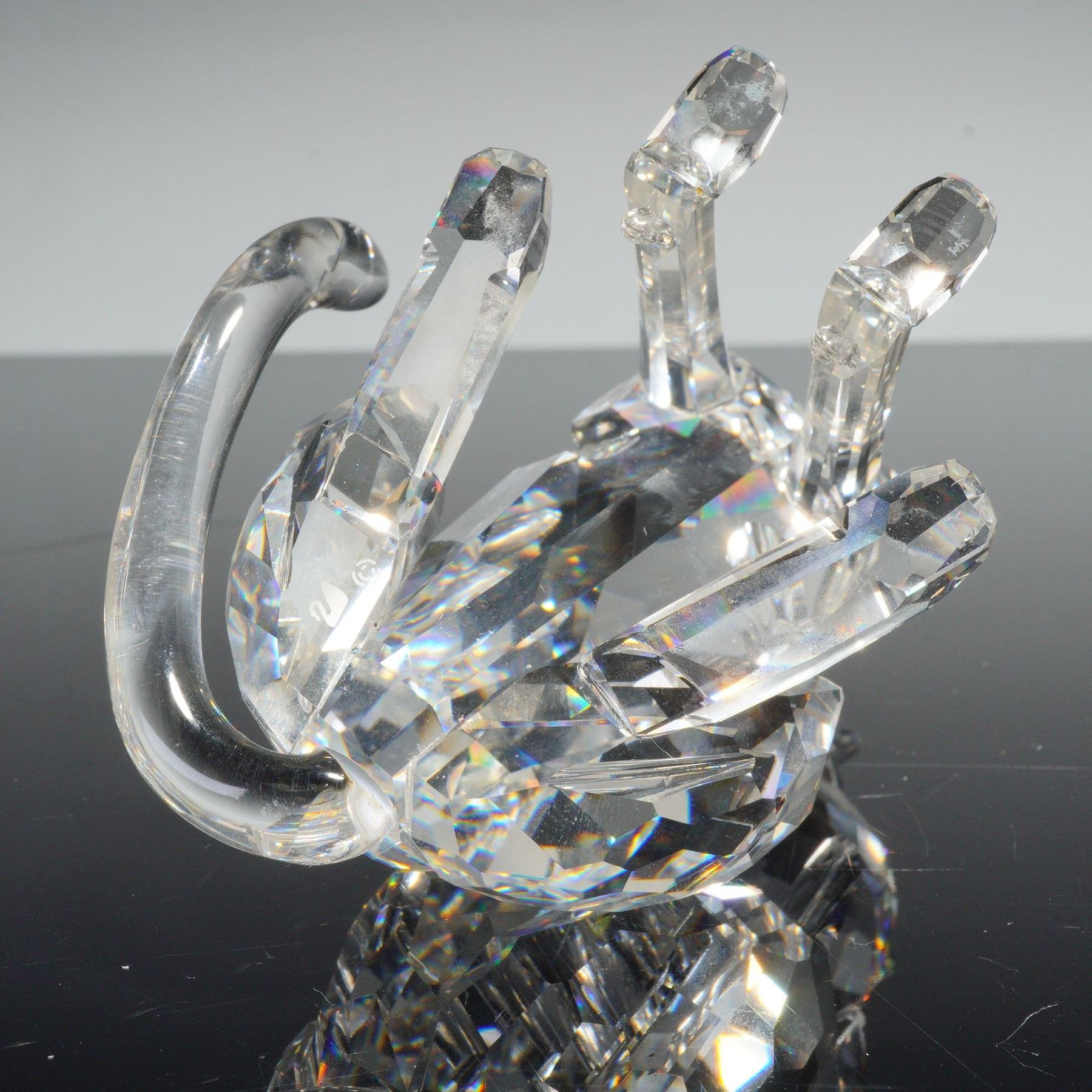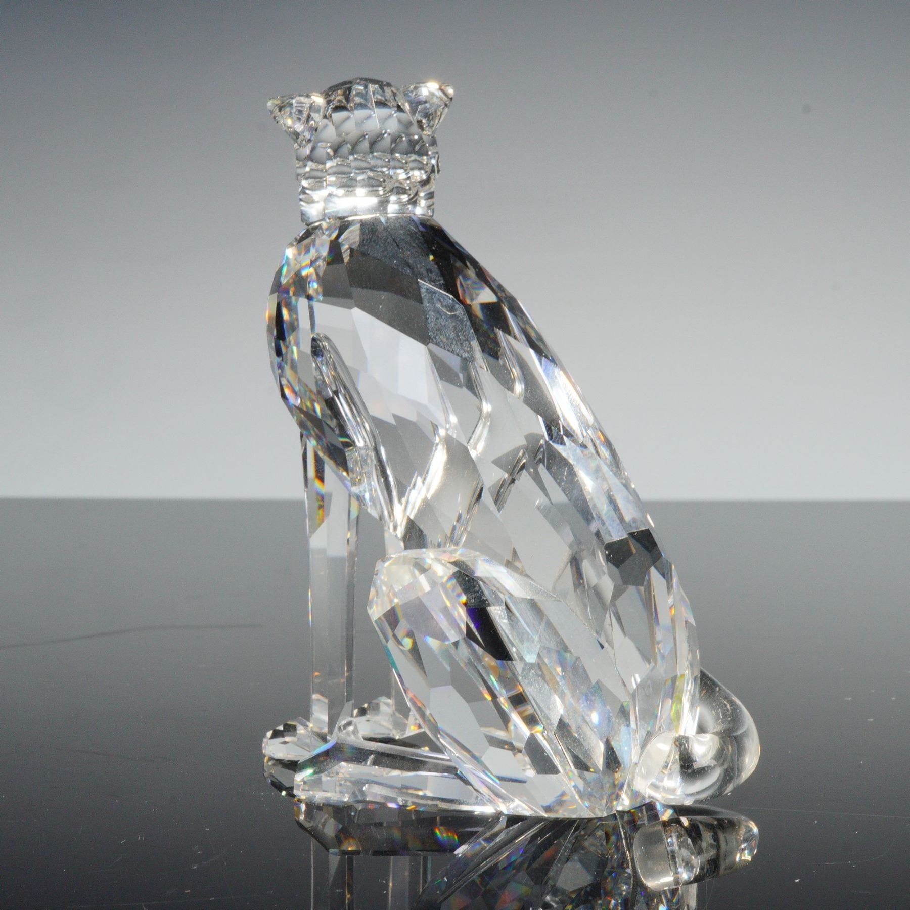This Swarovski crystal cheetah figurine is part of the African Wildlife theme group. It features a clear crystal body with intricate detailing, capturing the sleek and graceful nature of this majestic animal. Swarovski backstamp.