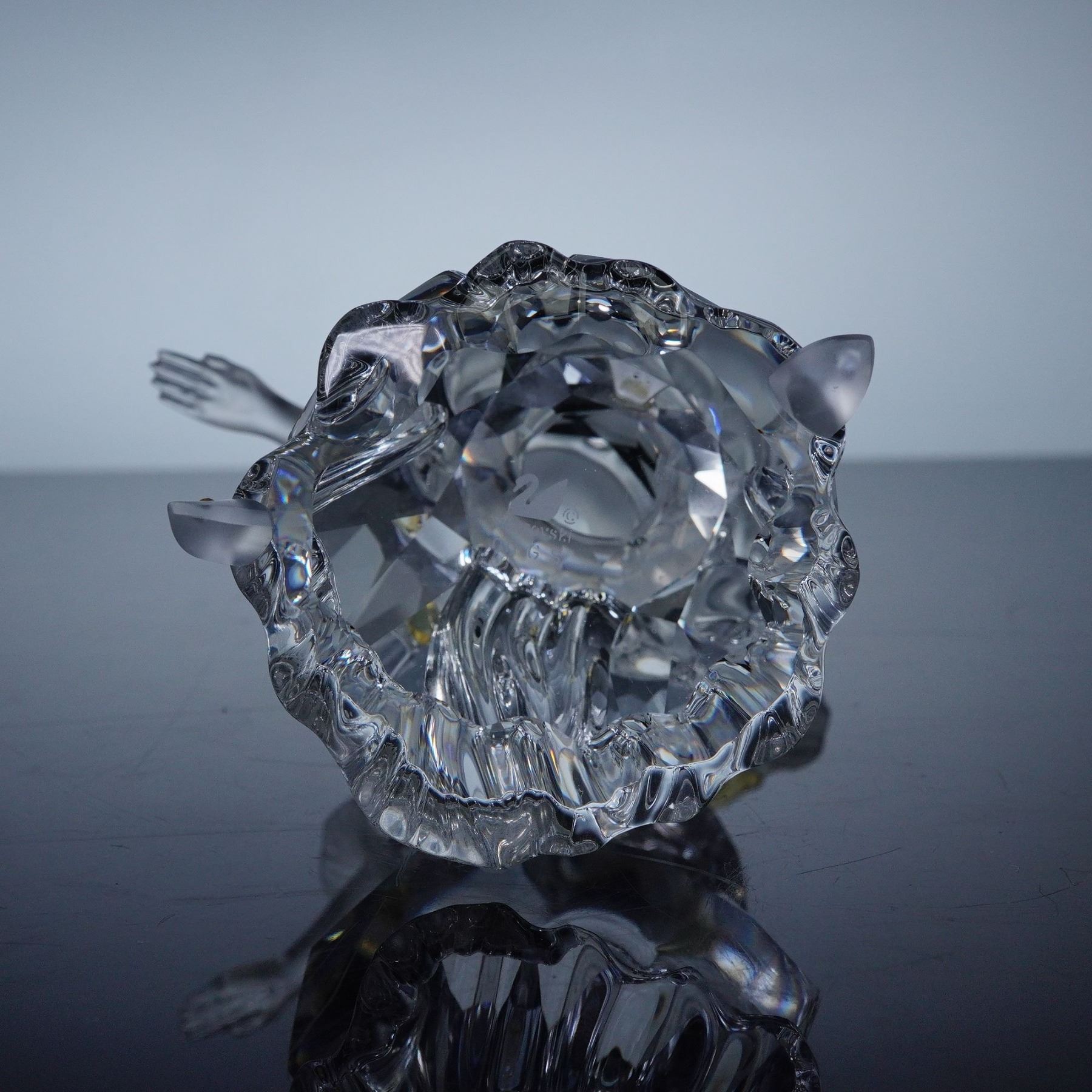 Swarovski 2000 Annual Edition Columbine crystal figurine 242032, part of the Masquerade series. Features faceted clear crystal dress, frosted face and arms, and gold-tone mask detail. Etched swan logo underside. Includes original box 10"H.