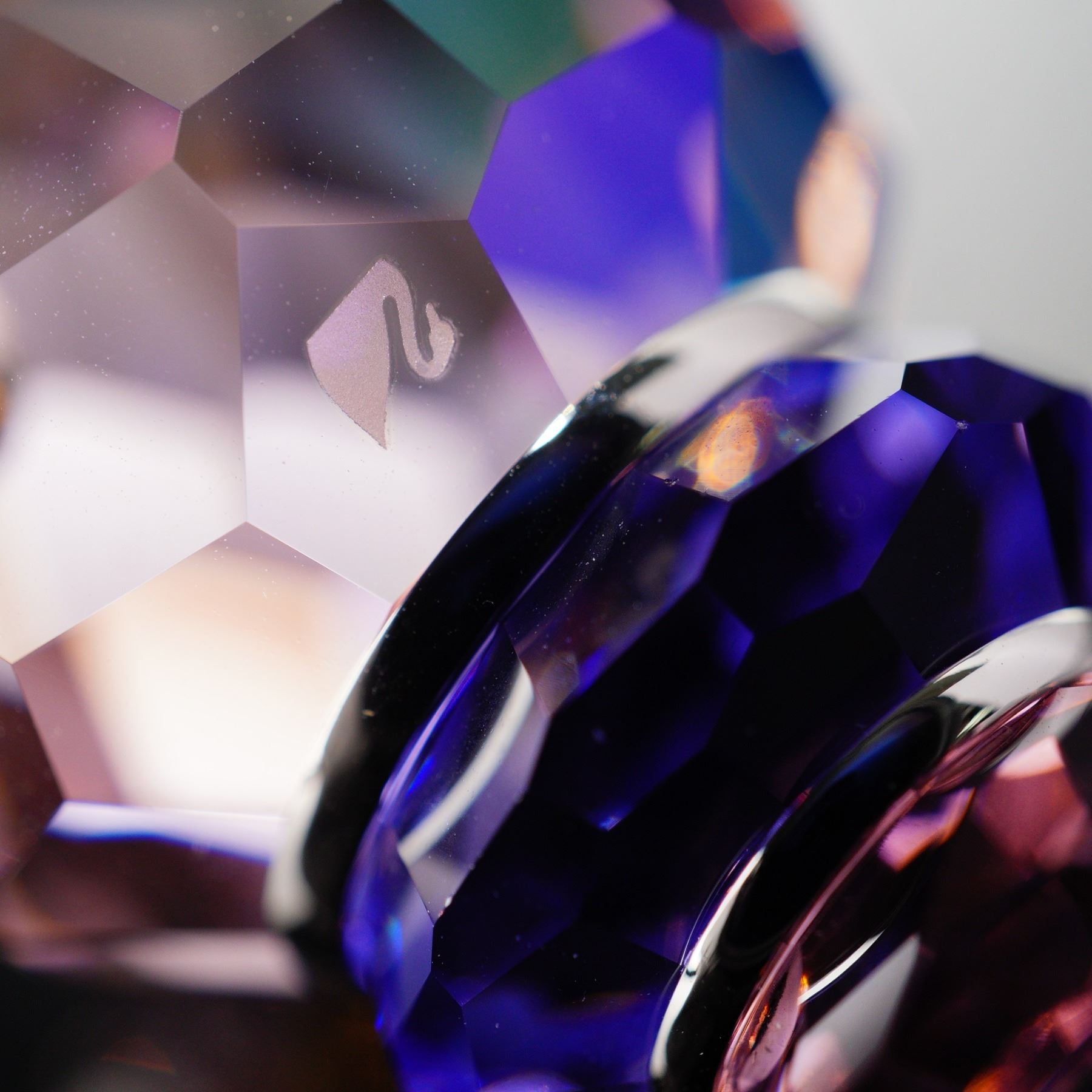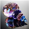 A brilliant Swarovski Crystal figurine modeled as the Corunna shell, displaying a spectrum of colors from violet and blue to warm amber tones. The faceted design captures and reflects light beautifully, highlighting its ocean-inspired form. The piece bears the Swarovski swan logo and represents the artistry of the Crystal Paradise collection.