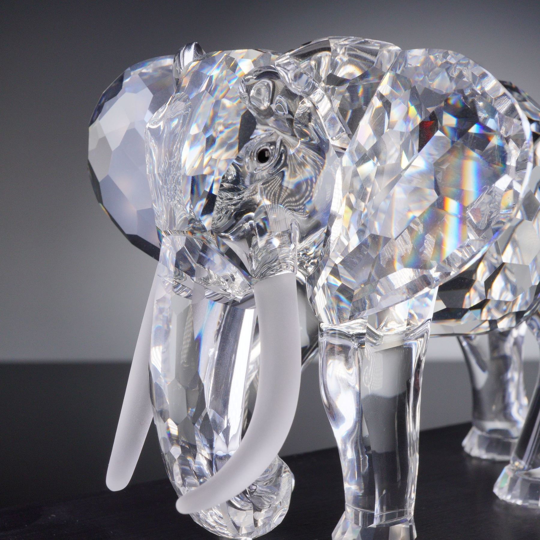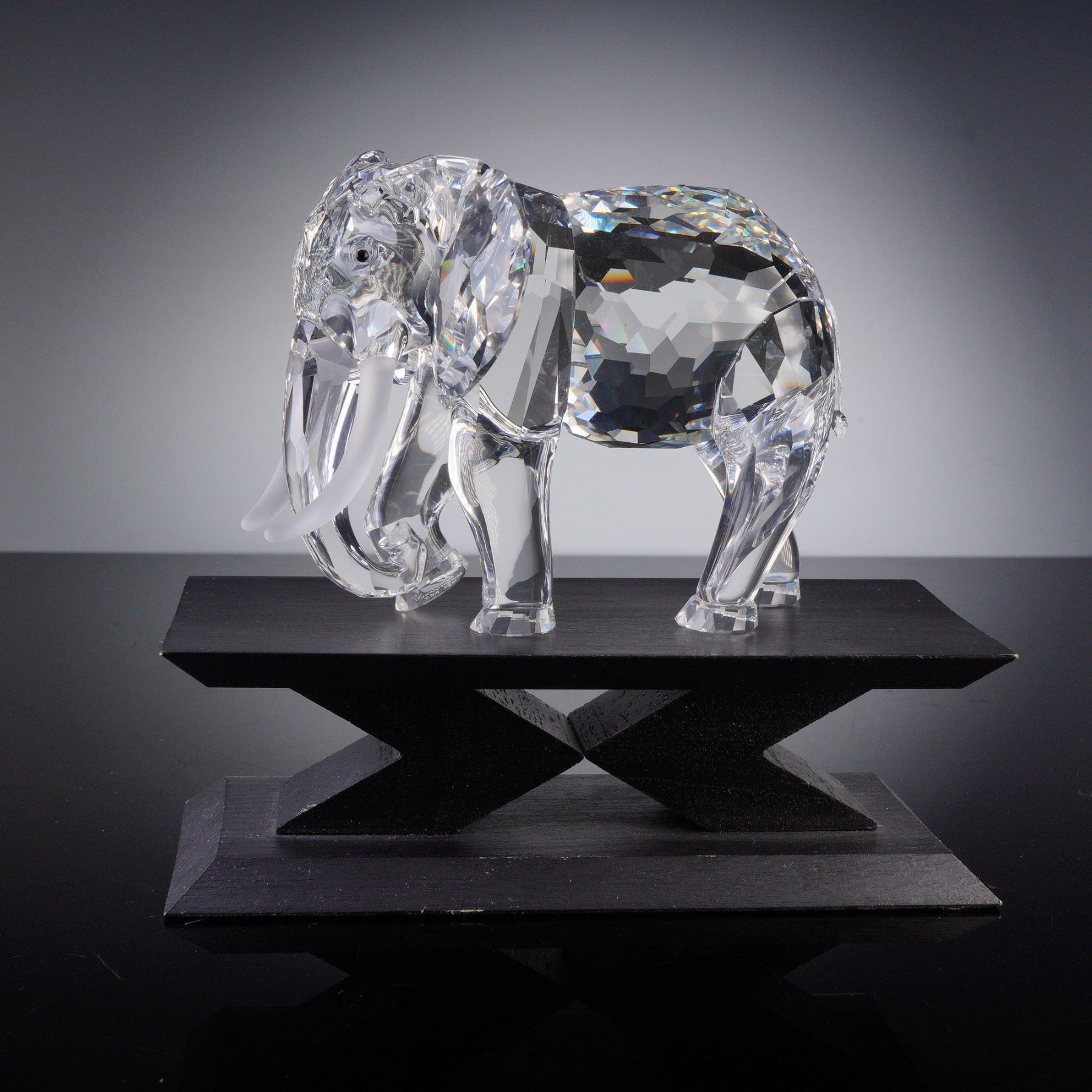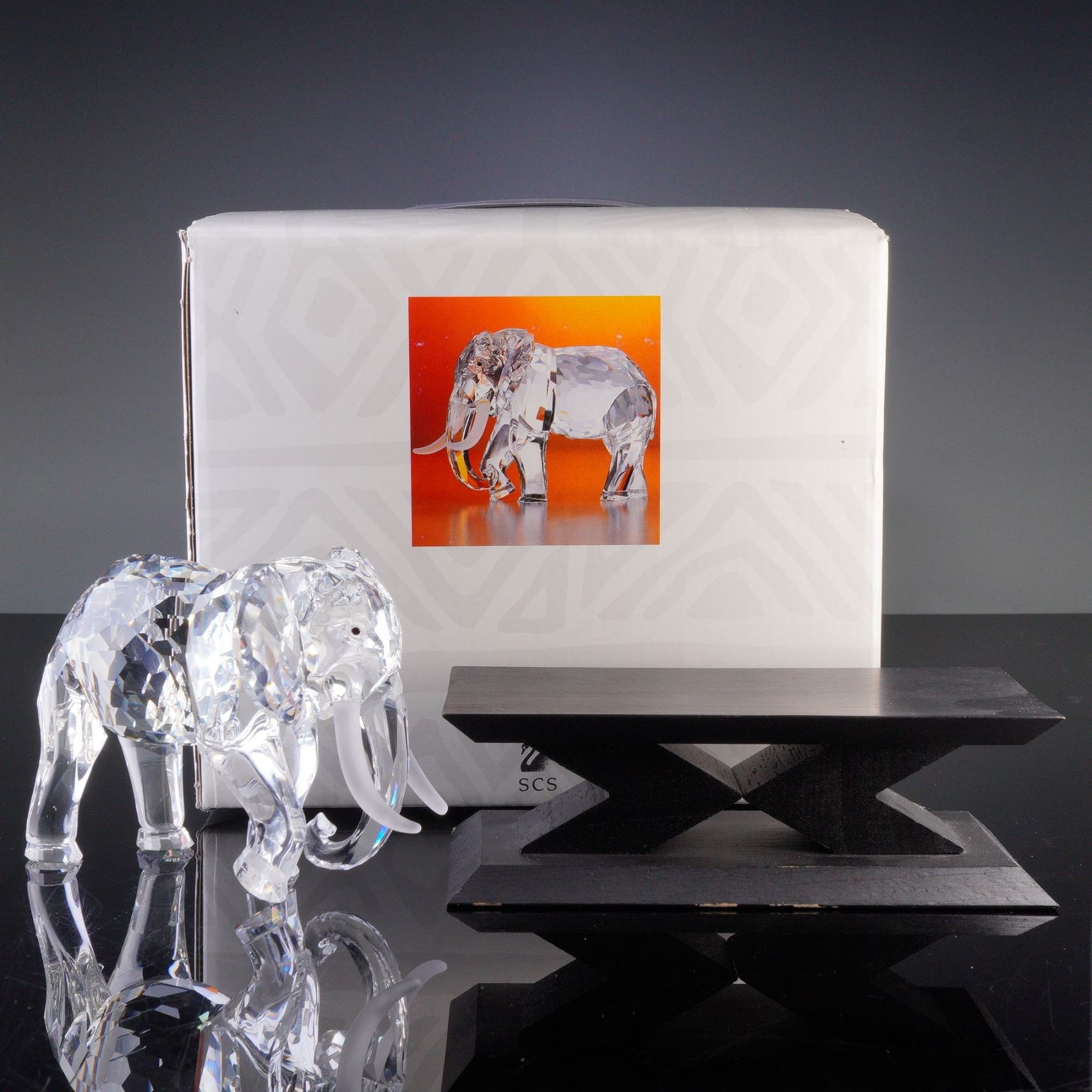 The first edition of the Inspiration Africa trilogy, this Elephant figurine was available exclusively to SCS members in 1993. The piece features a faceted and smooth clear crystal body, with frosted tusks and a beautifully crafted design. The Elephant is mounted on a sleek base and comes with its original box. The Swarovski backstamp is present.