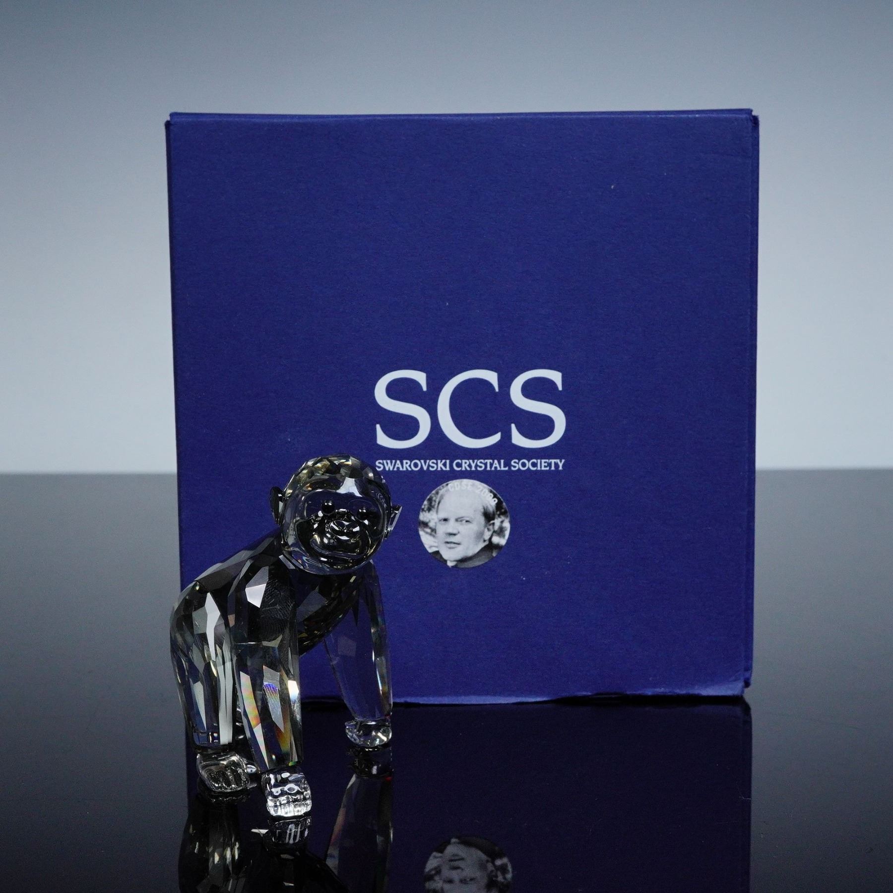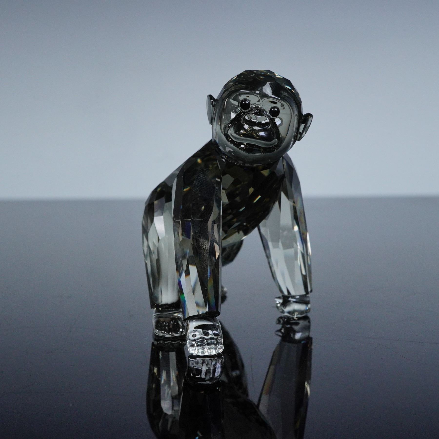 Swarovski 2009 Annual Edition Companion Gorilla Cub 955440 figurine crafted in smoky grey crystal, bearing the Swarovski backstamp and signed by the designer, includes original SCS box 5"H.