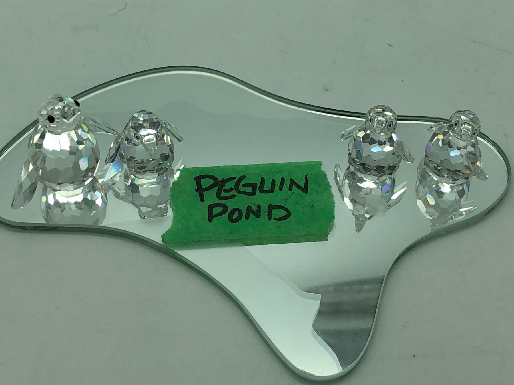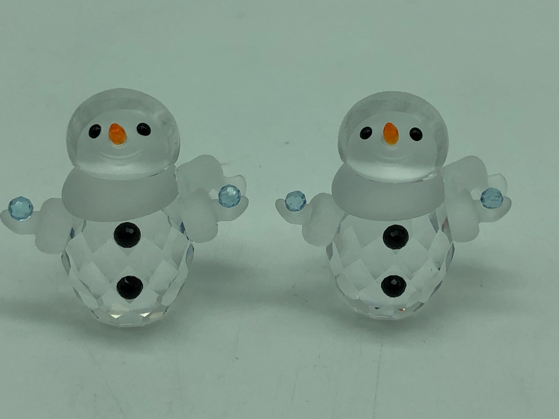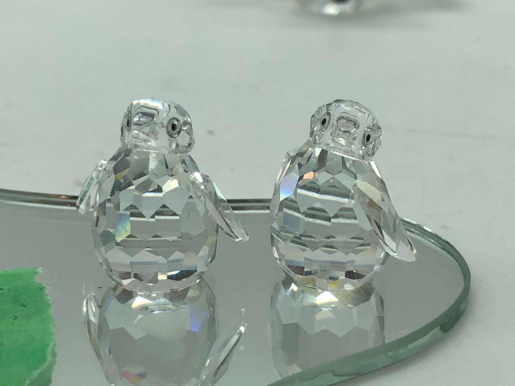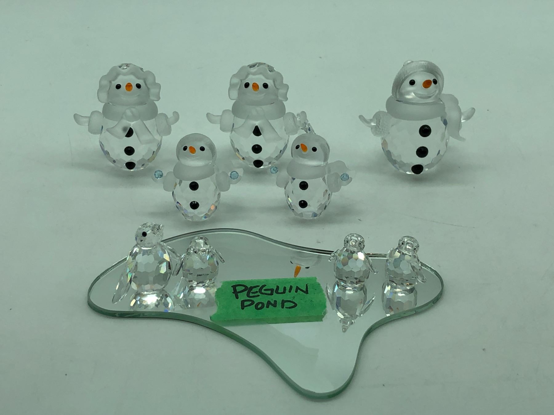 "Swarovski - Crystal Figurine" - Group of 9 crystal figurine - includes 5 pc set of Snowman family & 4 pc set of Penguins - assorted sizes