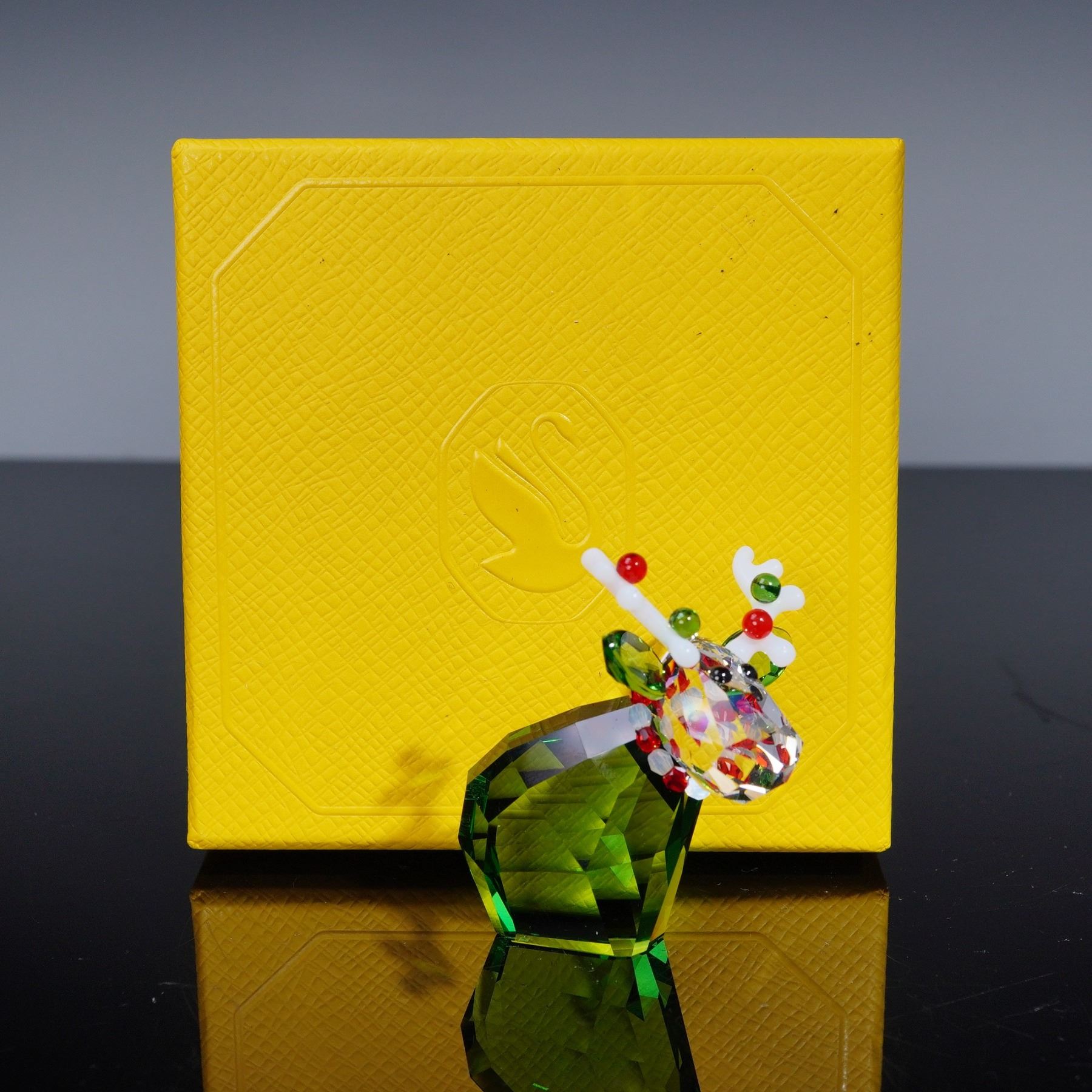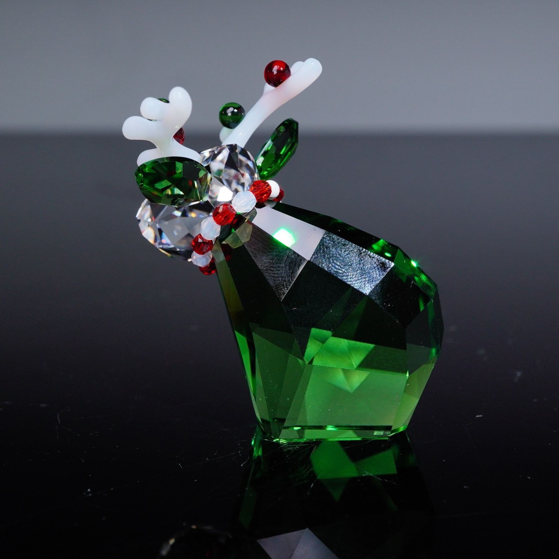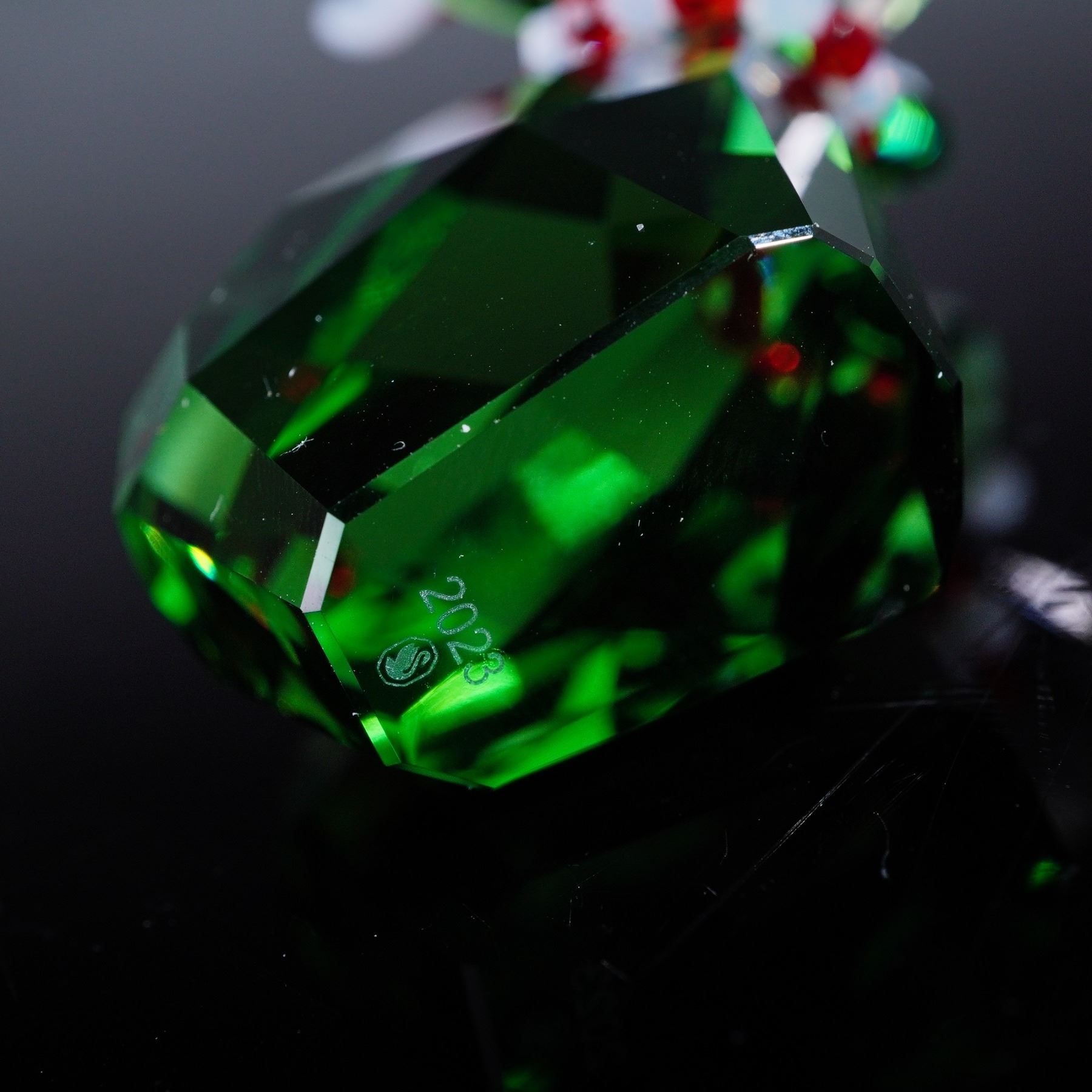 Swarovski's beloved Mo the Cow, now 18 years old, is part of the 2023 Holiday edition of the LOVLOTS collection. This year, Mo is dressed in festive green with a design featuring 387 light-catching facets. She is adorned with a red and white candy necklace and red and green fairy lights wrapped around her horns, bringing extra holiday cheer. Presented in her signature yellow box, Mo is sure to become a cherished part of your seasonal celebrations.