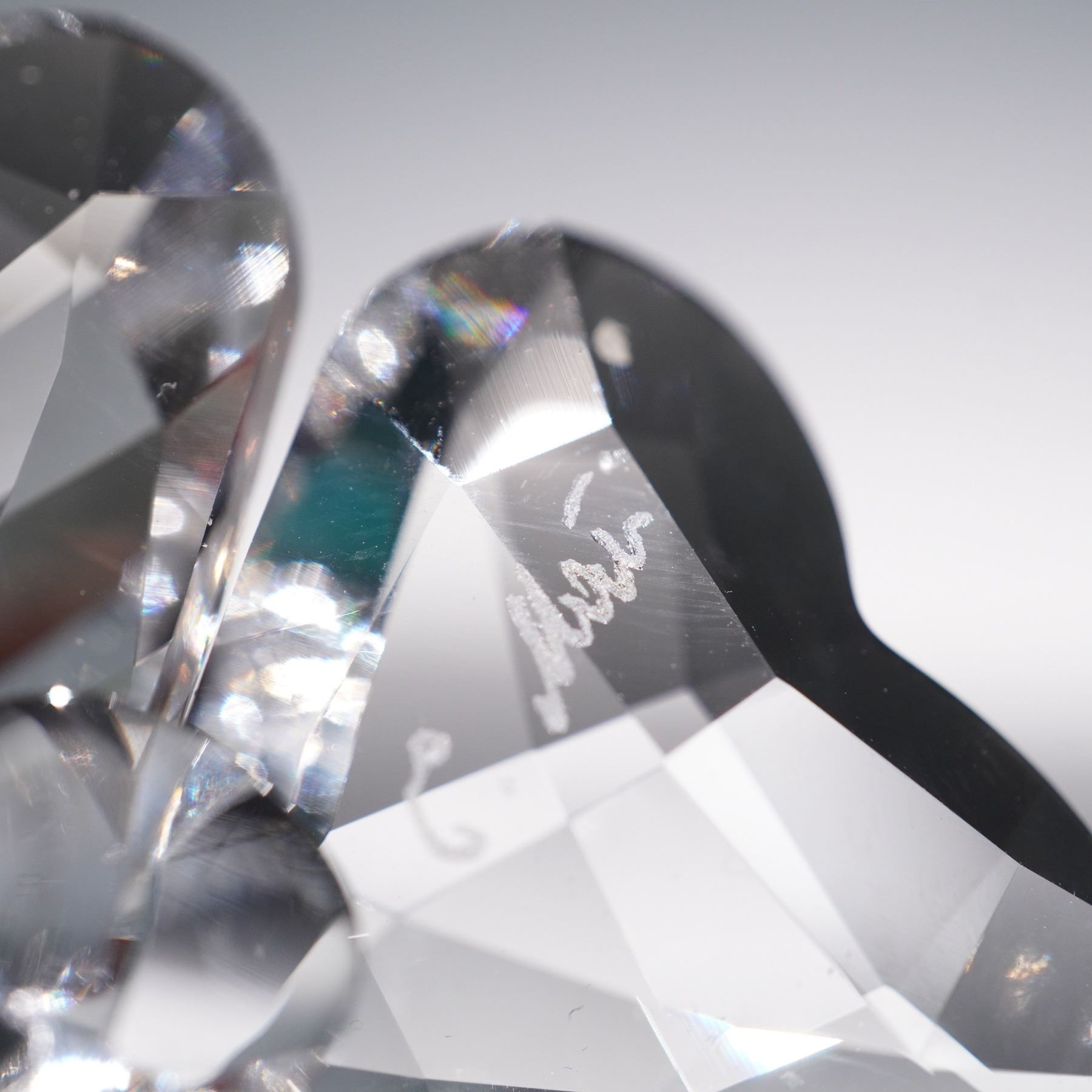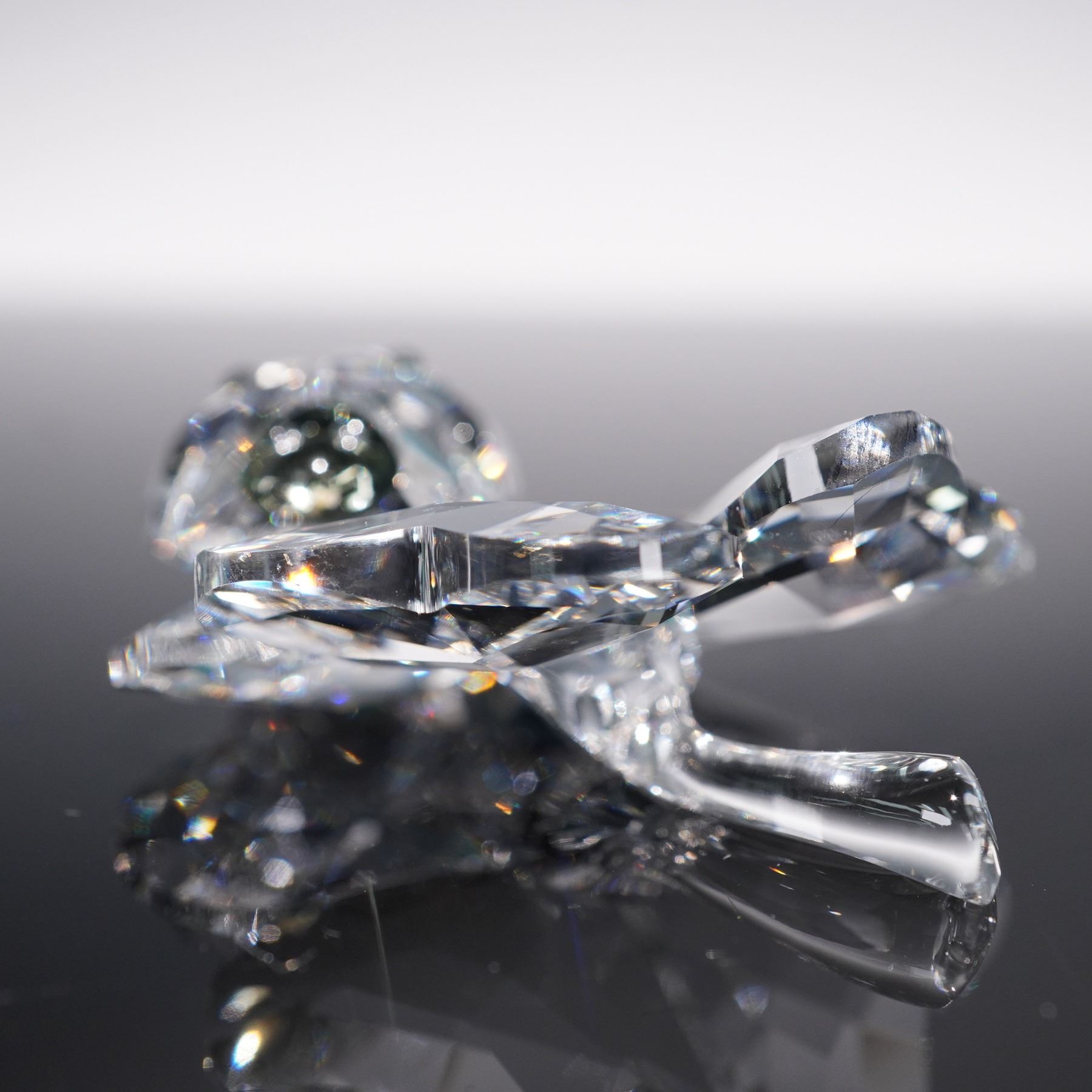Swarovski crystal figurine depicting a ladybug perched on a four leaf clover. The clear faceted crystal leaves are paired with a finely detailed ladybug, bringing sparkle and charm to the piece. Signed on the base, marked, and complete with its original box.