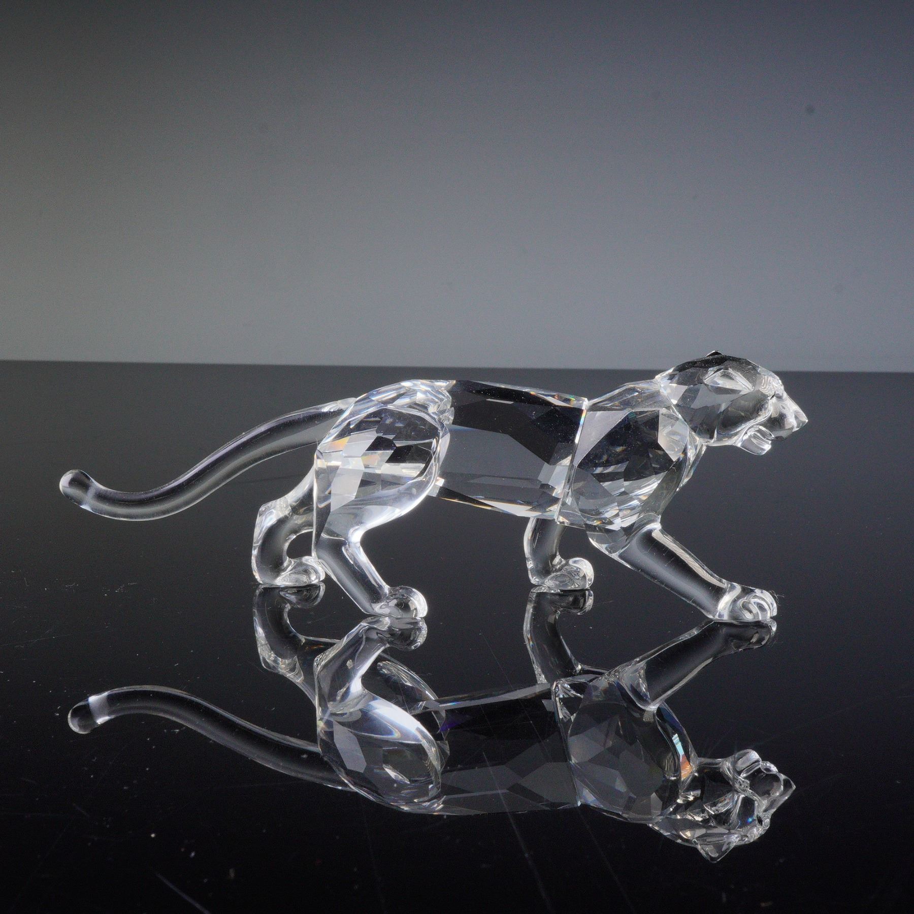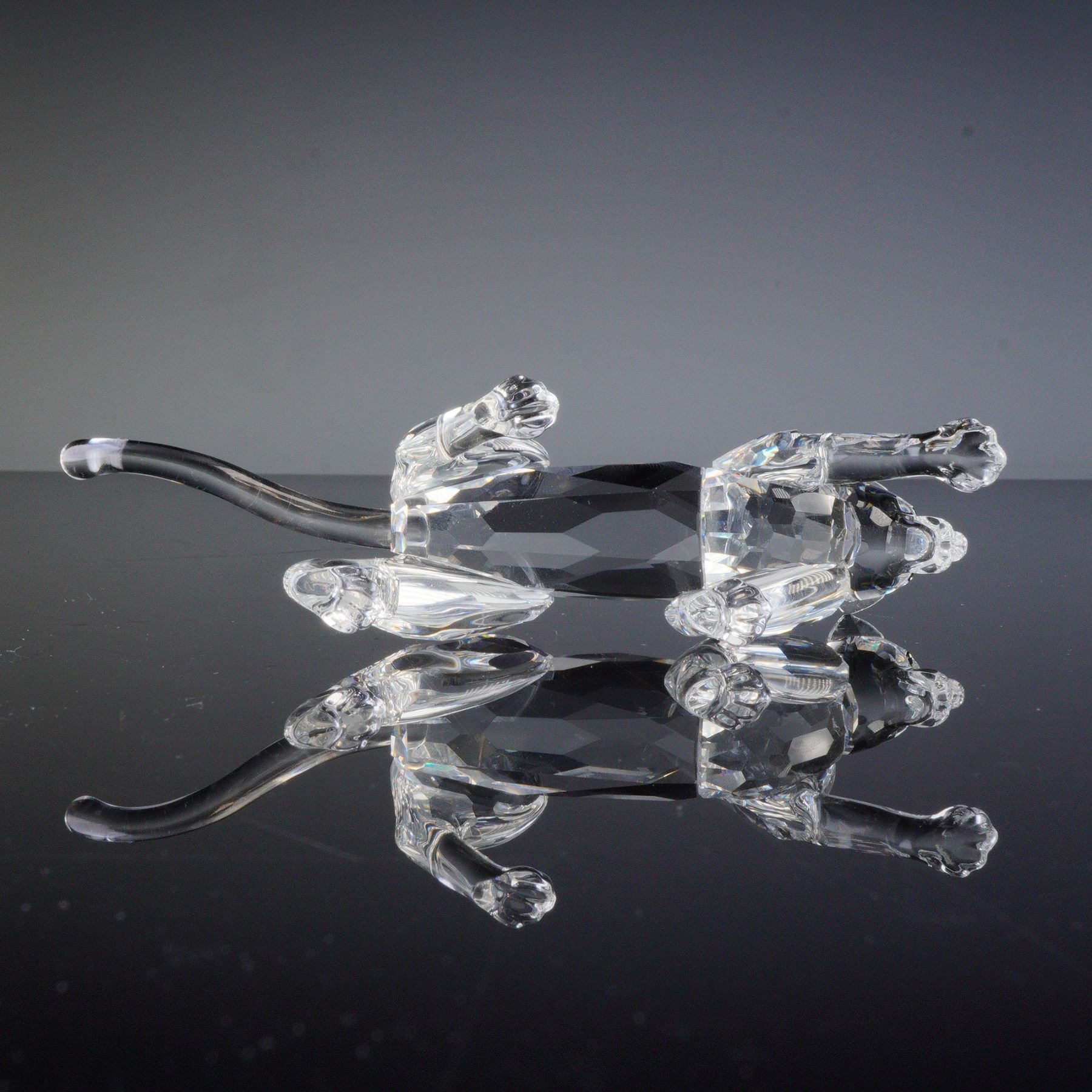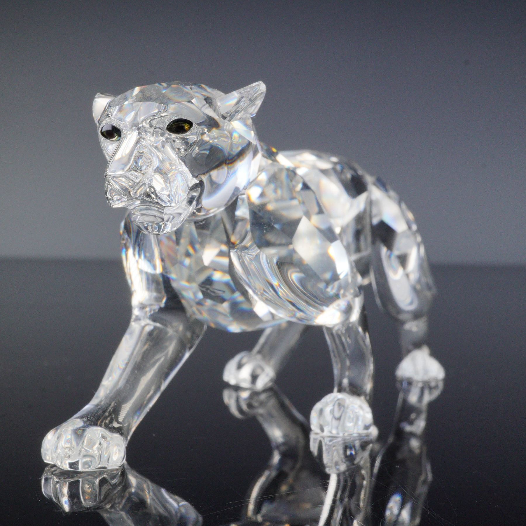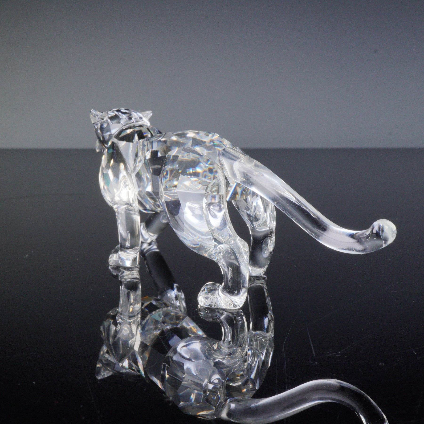 This Swarovski crystal leopard is part of the African Wildlife theme group. The figure is crafted from both molded and clear cut crystal, capturing the elegance and fierce beauty of this iconic animal. Swarovski backstamp.