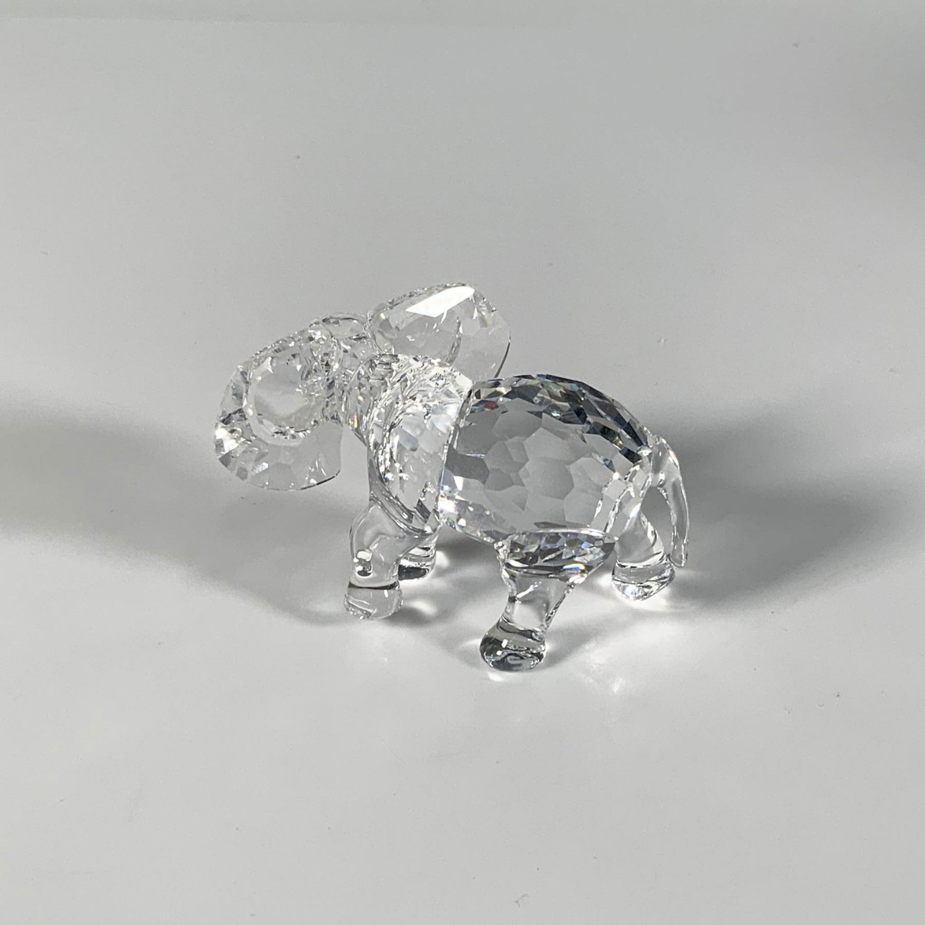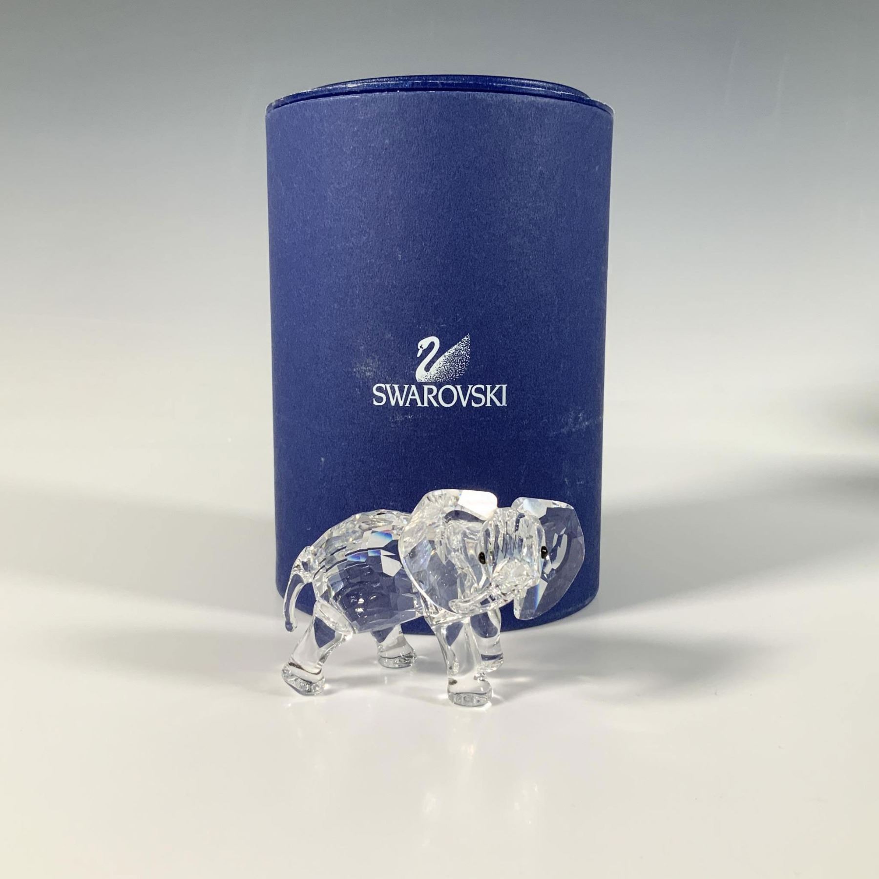 An adorable faceted figure of an elephant with black eyes. Part of the Rare Encounters collection. Swarovski acid mark. This item has its original box: 3.25"W x 4.75"H. Artist: Heinz Tabertshofer
